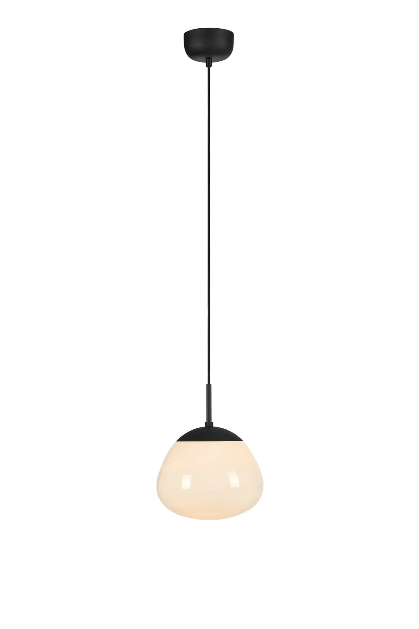 Pro dokonalý efekt doporučujeme zvolit dekorativní LED žárovku E27 s teple bílou barvou světla (2700–3000 K), která zvýrazní eleganci skleněného difuzoru a zároveň minimalizuje spotřebu energie. Díky delšímu přívodnímu kabelu lze závěs snadno přizpůsobit výšce stropu i potřebám konkrétního prostoru.