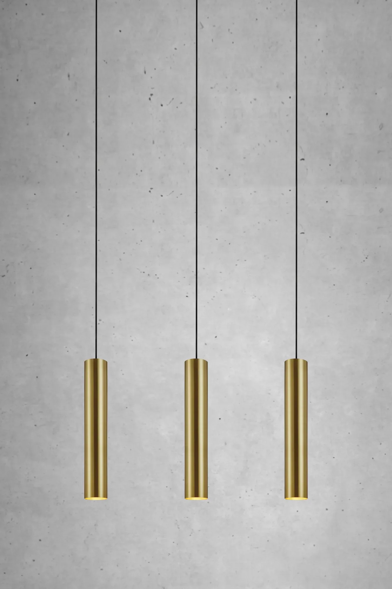 Závěsné svítidlo Markslöjd Ruben v mosazné povrchové úpravě je stylovým a funkčním řešením pro každý moderní interiér. Díky třem dlouhým válcovým tubusům z kartáčované mosazi vnáší do prostoru eleganci, preciznost a industriální nádech. Minimalistický tvar a kvalitní zpracování zaručují, že svítidlo zůstane nadčasovým a dominantním prvkem nad jídelním stolem, kuchyňským ostrůvkem či v obýváku.