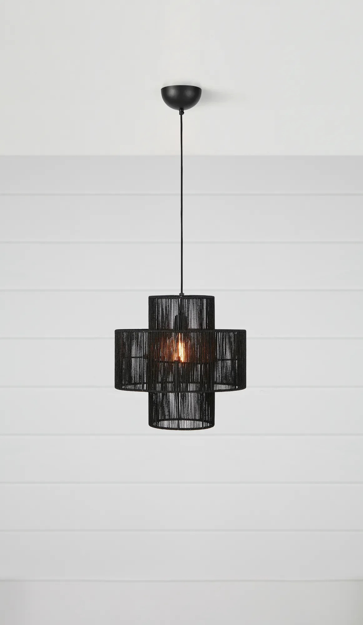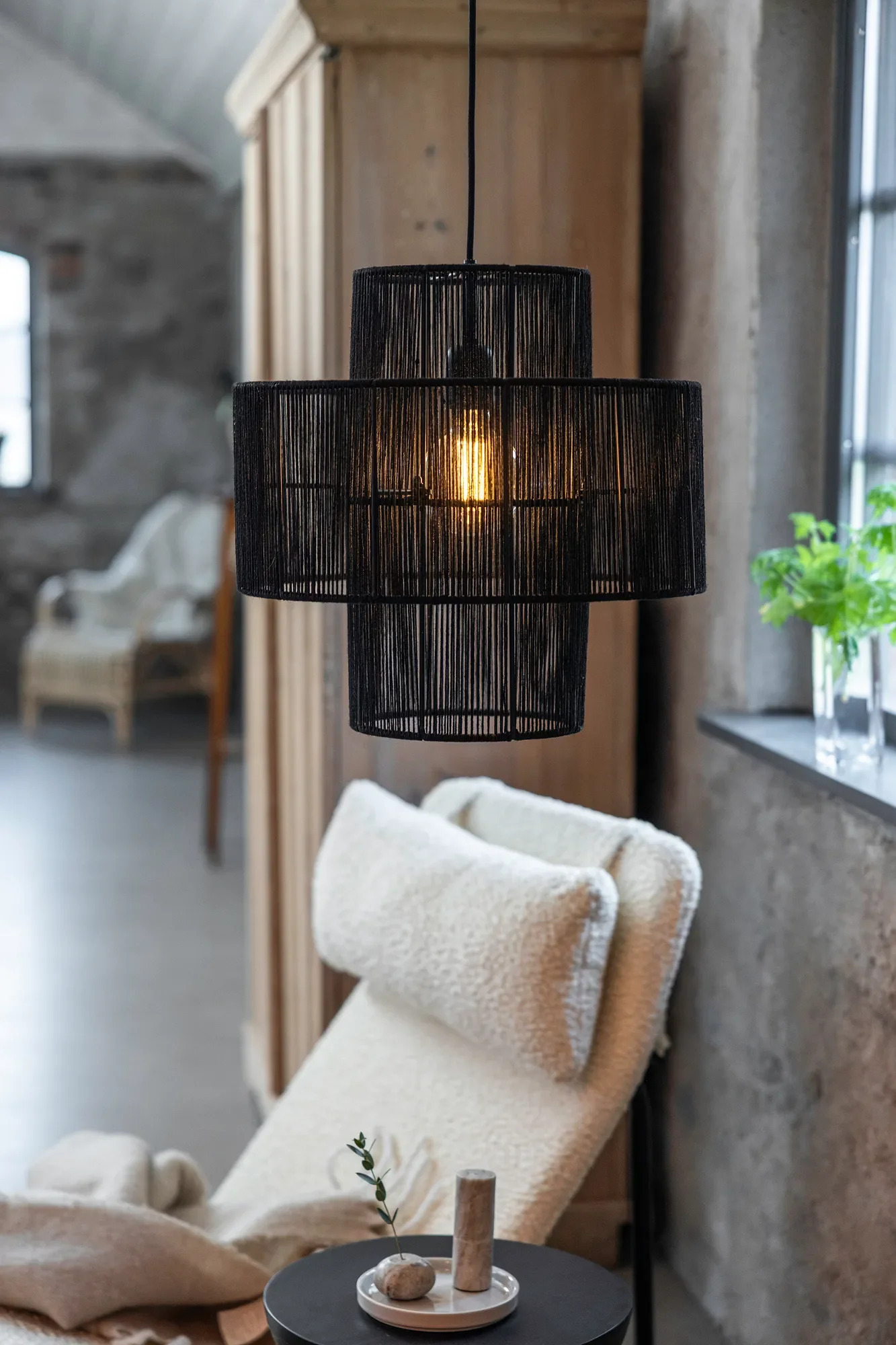 • Přírodní materiál: Ručně zpracované stínidlo z černého jutového vlákna v kombinaci s kovem (železo) vytváří originální vzhled.