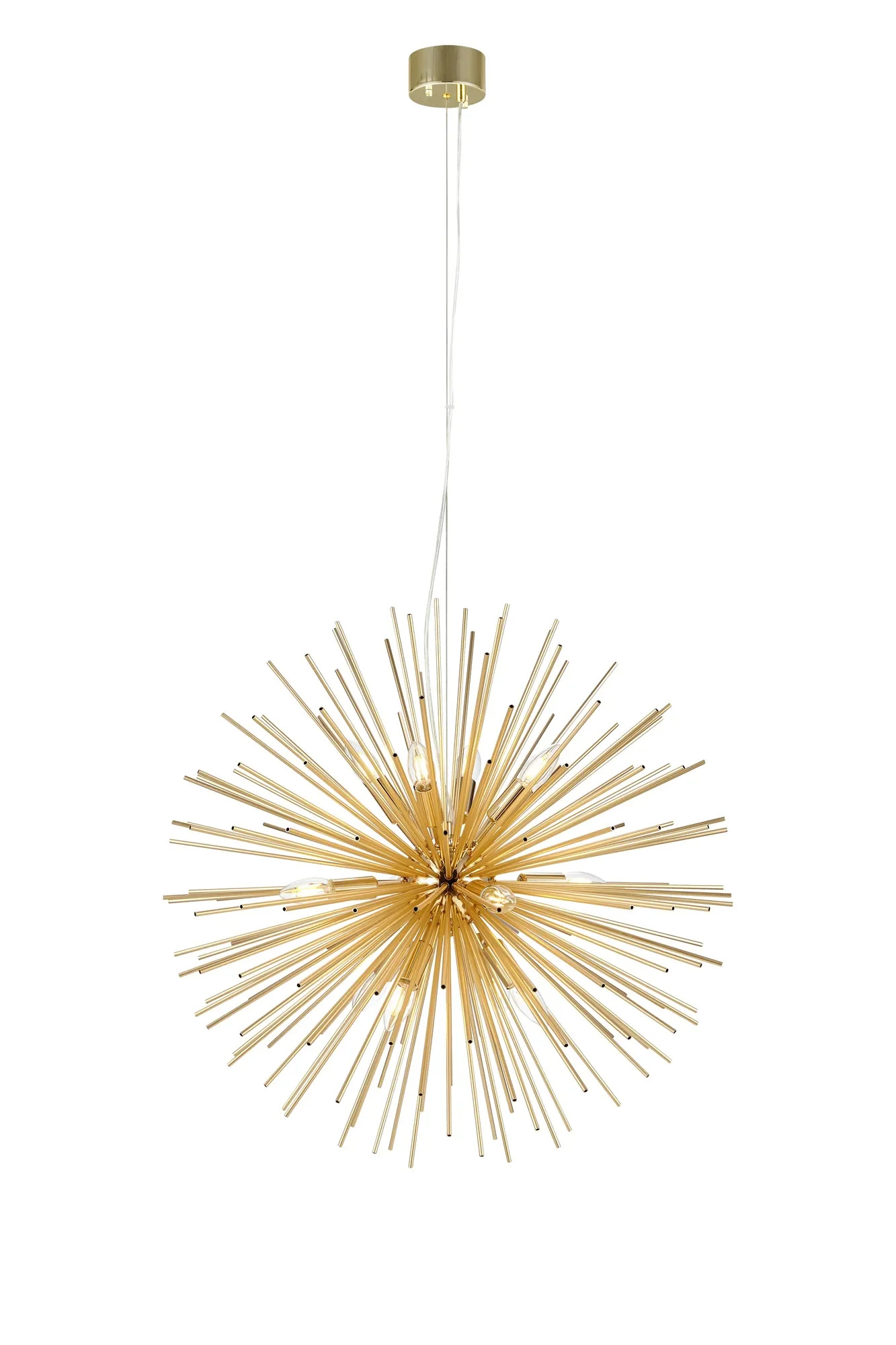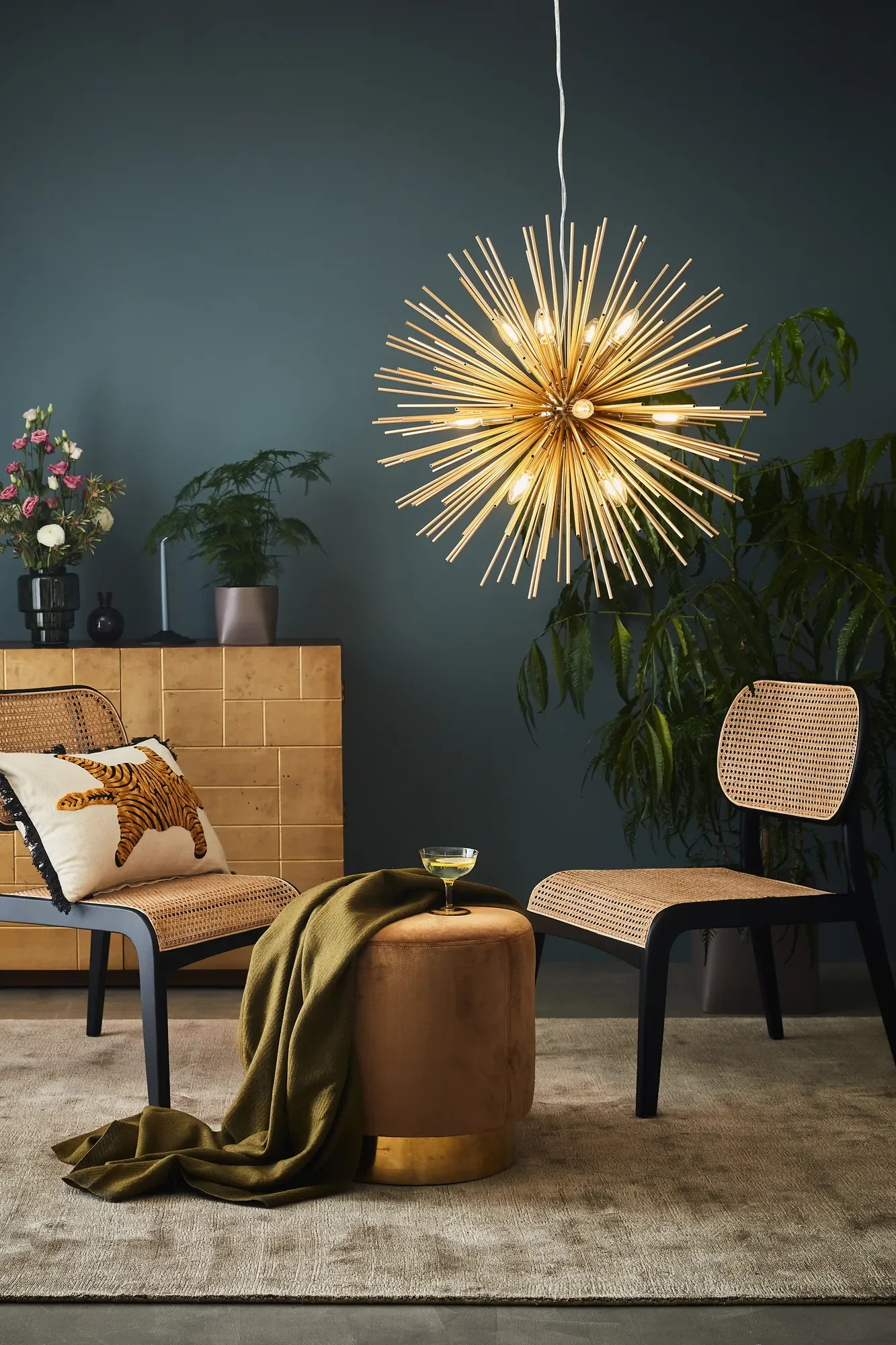 Závěsné svítidlo Markslöjd Soleil je skutečnou designovou perlou, která okamžitě upoutá pozornost v každém prostoru. Inspirováno tvarem slunce, okouzlí svým luxusním vzhledem díky zlatým kovovým prutům, které vytvářejí unikátní třpytivý efekt a rozptylují světlo do všech stran. S dvanácti světelnými body poskytuje Soleil nejen dostatek osvětlení, ale také neopakovatelnou atmosféru.