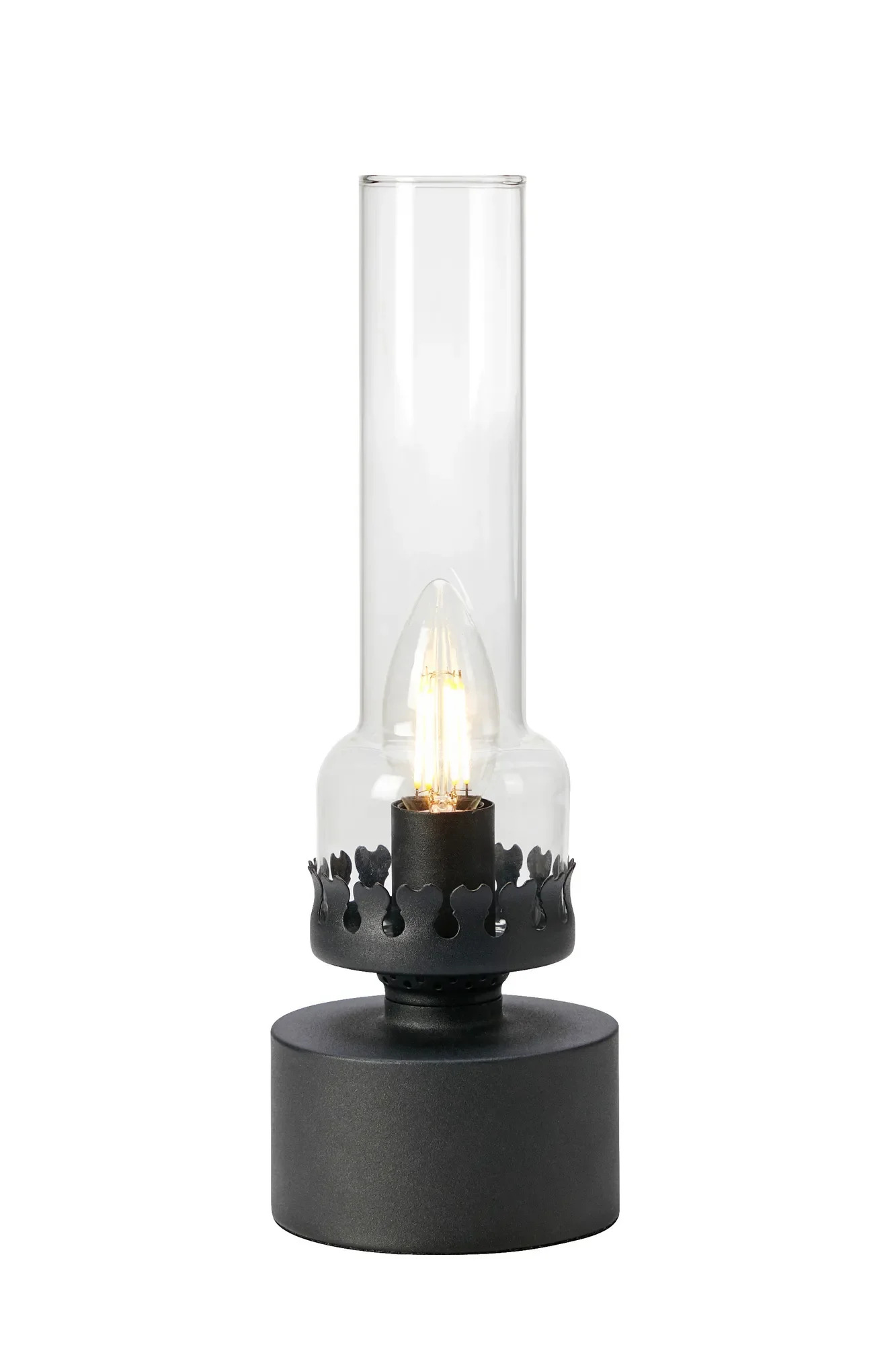 Stolní lampa Markslöjd Kandella v matně černé barvě je mimořádně stylovým doplňkem do každého interiéru. Její design vychází z tvaru tradiční petrolejové lampy, což jí propůjčuje jedinečný charakter a nostalgický nádech. Kombinace kovového těla s matným práškovým lakem a čirého skla vytváří atmosférické osvětlení a zároveň vynikající dekorativní prvek.