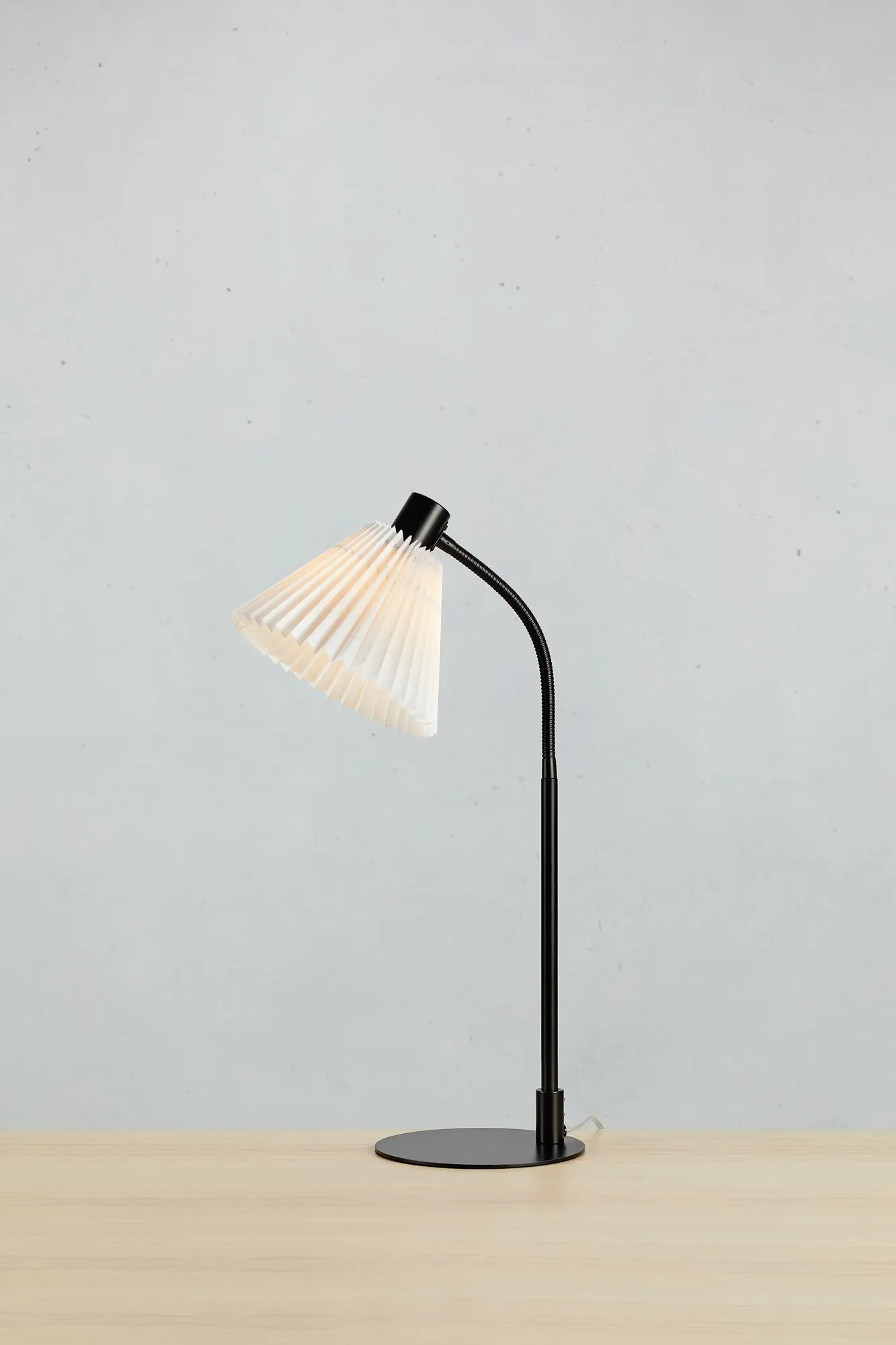 Stolní lampa Markslöjd Mira představuje nadčasové spojení elegance a funkčnosti. Minimalistický design v černé barvě s bílým plisovaným stínidlem vynikne na pracovním stole, komodě i nočním stolku. Flexibilní krk umožňuje snadné nastavení směru světla přesně podle vašich potřeb, zatímco stínidlo zajišťuje příjemně rozptýlené světlo a útulnou atmosféru.