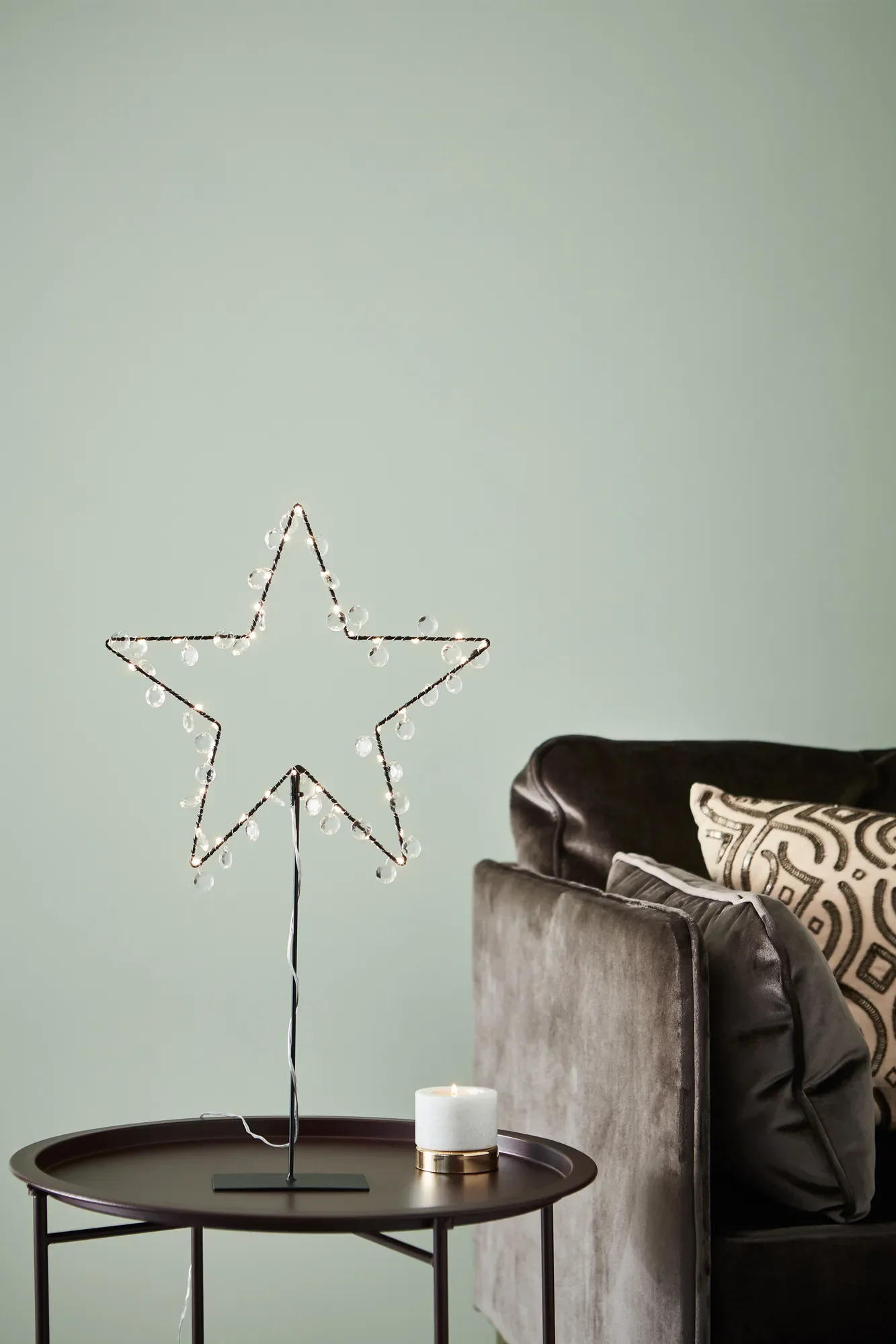 Markslöjd Wivi je stylová stolní hvězda v moderním černém provedení, která díky kovové konstrukci a skleněným prismatům okamžitě upoutá pozornost. Tento designový kousek je vhodný jak pro interiér, tak pro chráněné venkovní prostory díky vysokému krytí IP44. Hvězda je osazena 40 teplými bílými LED diodami, které v kombinaci se skleněnými prvky vytváří fascinující světelný efekt.