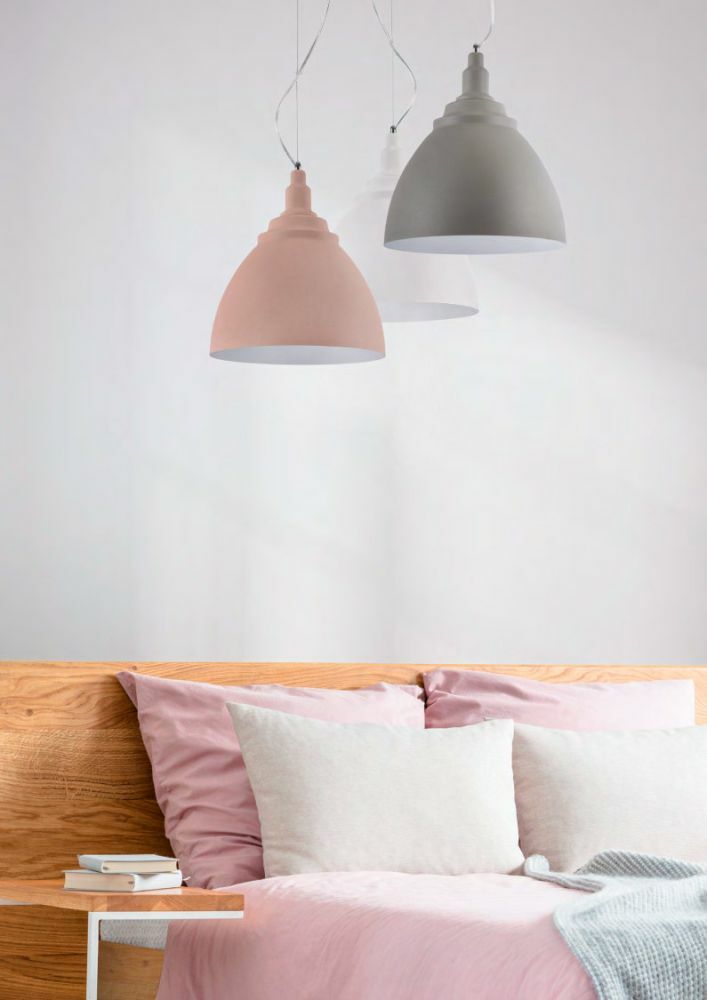 Závěsná lampa s kovovým stínítkem potaženým práškem. K dispozici ve 4 barvách.