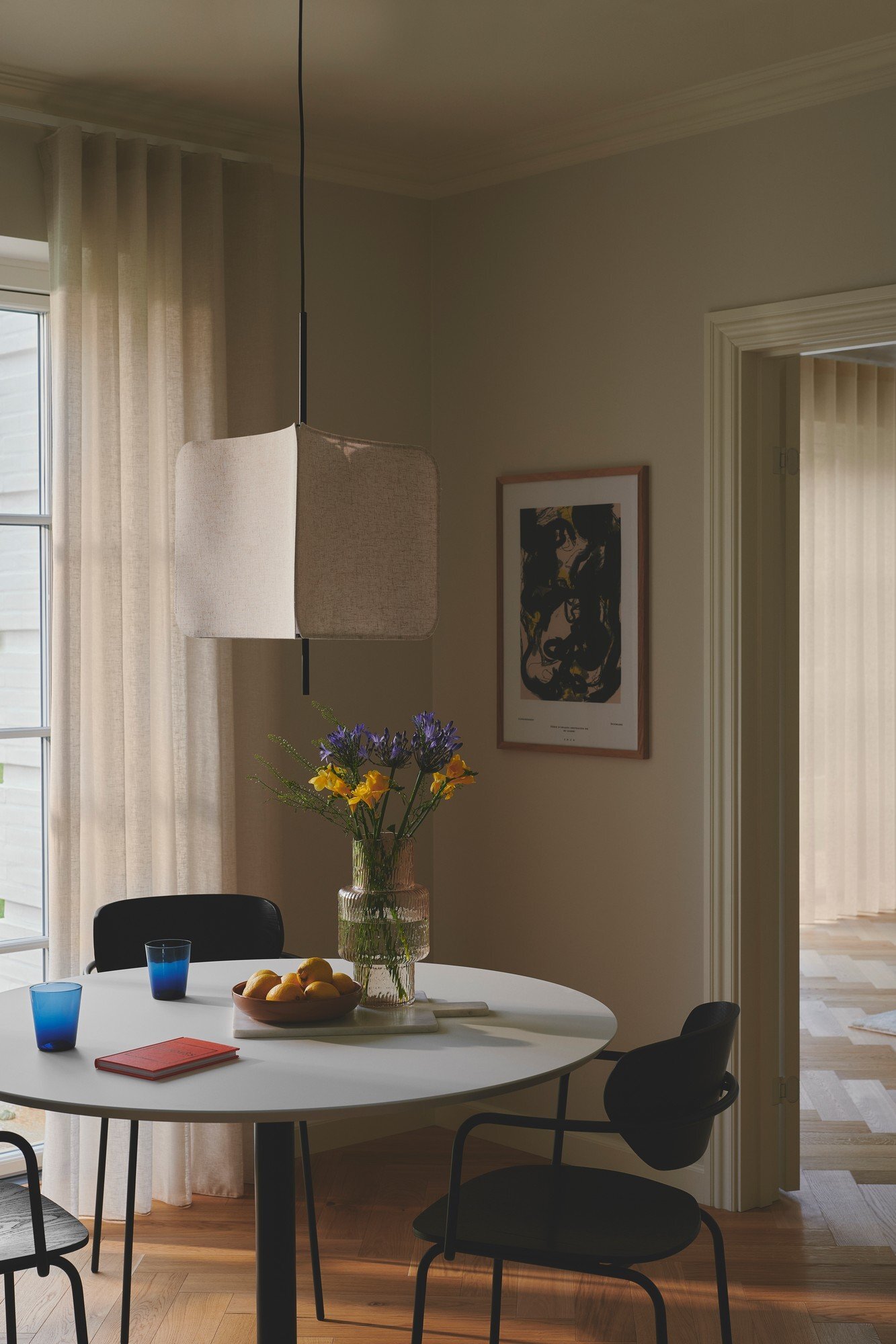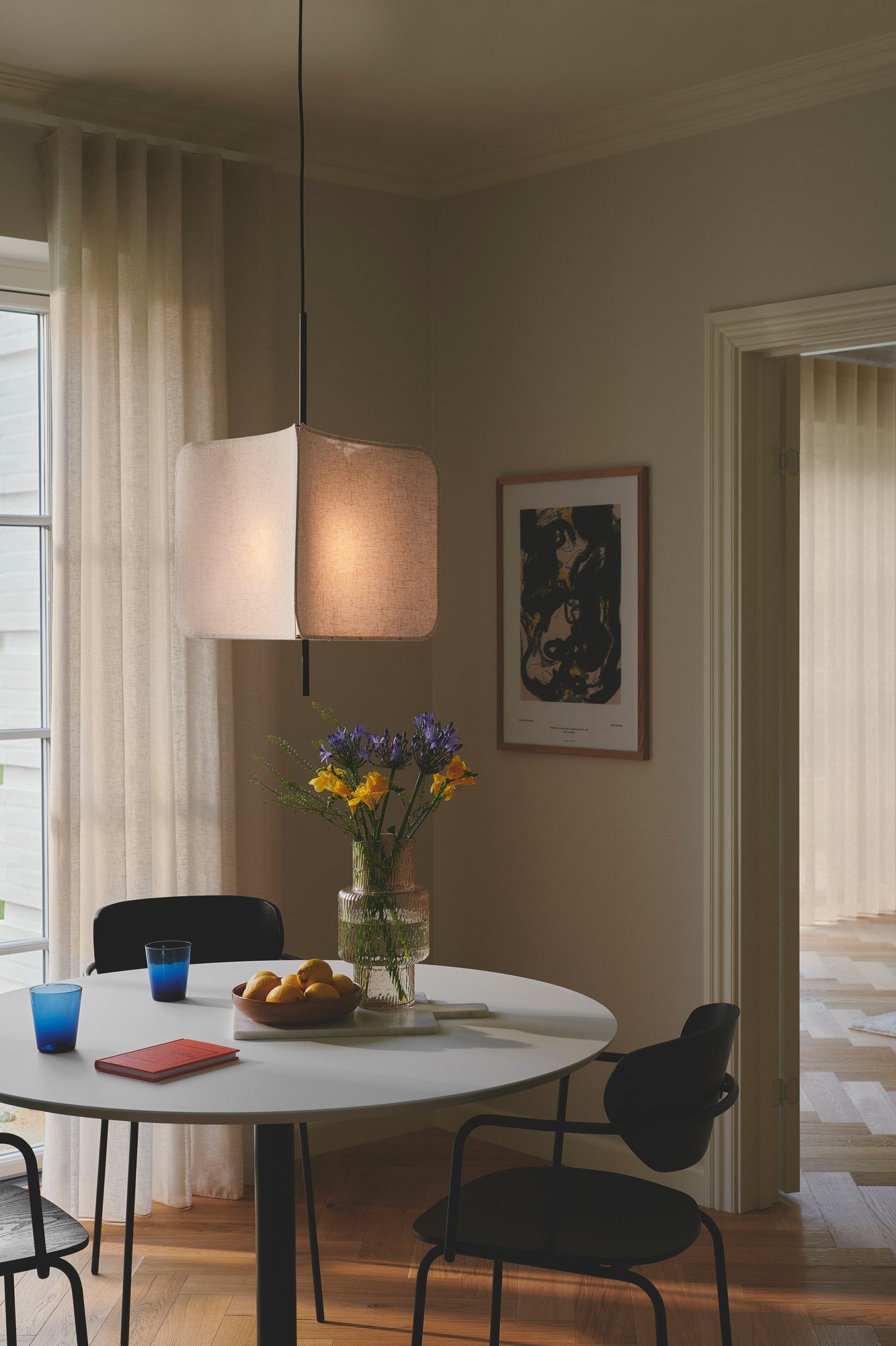 Tinto je moderní závěsné svítidlo s zajímavým designem. Trojúhelníkové stínítko visí z tenkého závěsu, což vytváří lehký a elegantní vzhled. Tinto poskytuje útulné, rozptýlené světlo, které je ideální nad jídelním stolem nebo v rohu obývacího pokoje.
