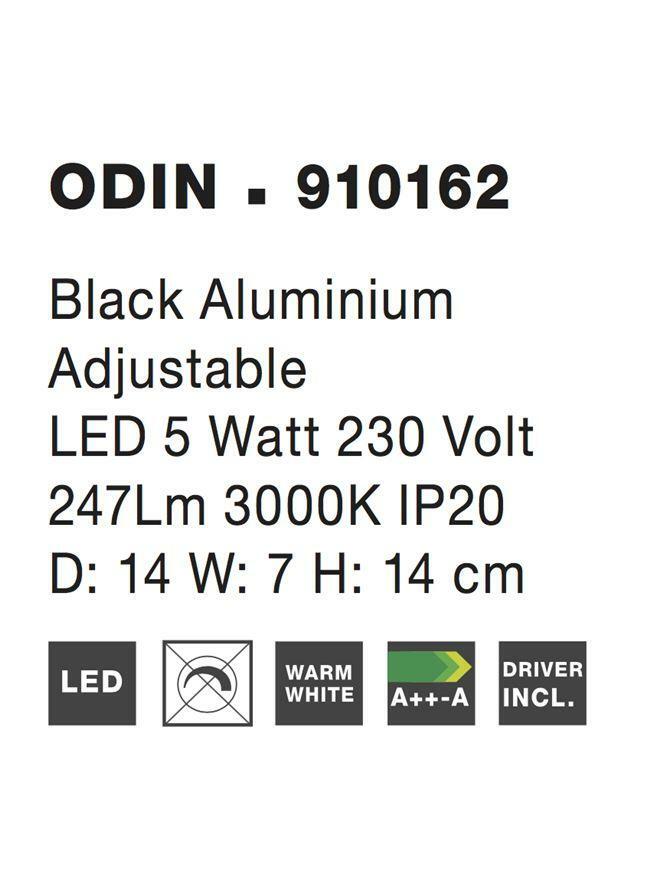 Svítidlo Nova Luce Odin představuje elegantní a moderní řešení pro váš interiér. Toto kovové nástěnné svítidlo je vybaveno vestavěnou LED technologií, která zaručuje nejen nízkou spotřebu energie, ale také dlouhou životnost. S jeho čistým minimalistickým designem a černou povrchovou úpravou se hodí do každého současného prostoru.