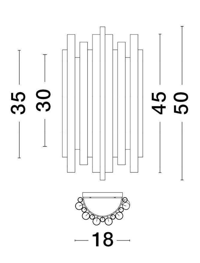 Dominantní liniový motiv vyniká díky elegantnímu zlatému provedení. Osm vertikálních tubusů z vysoce kvalitního hliníku vytváří efektní hru světla a stínů na stěně, zatímco akrylové detaily jemně rozptylují světlo v příjemném teplém odstínu 3000K.