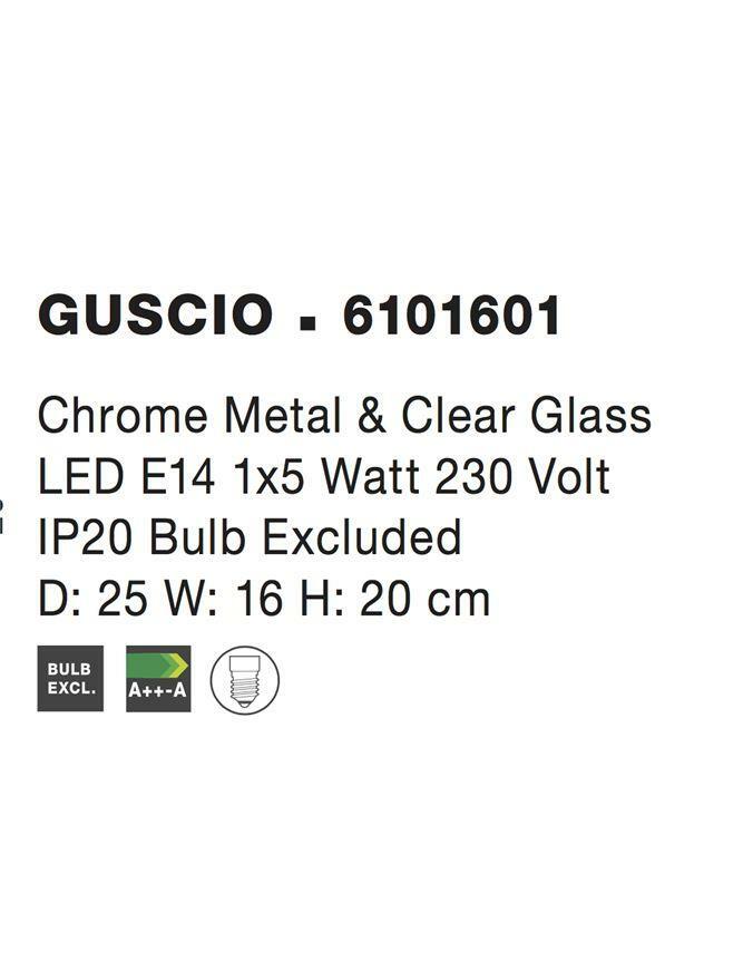 Přineste luxusní a moderní nádech do svého interiéru s nástěnným svítidlem NOVA LUCE GUSCIO. Toto elegantní svítidlo kombinuje chromovaný kov a čiré sklo, což vytváří jemný a sofistikovaný vzhled, který se hodí do jakéhokoliv prostoru.