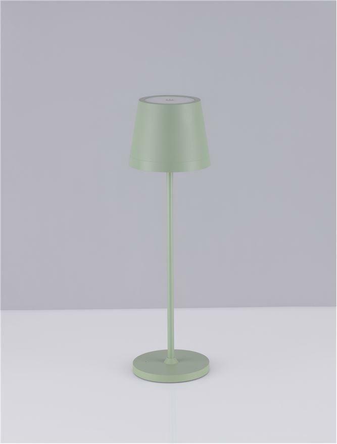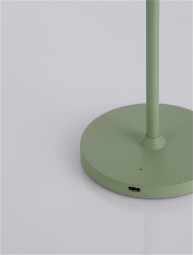 NOVA LUCE venkovní stolní lampa SEINA olivově zelený hliník a akryl LED 2W 2700K 5V DC IP54 vypínač na těle nabíjecí s PG základnou nebo USB C kabelem 9223405