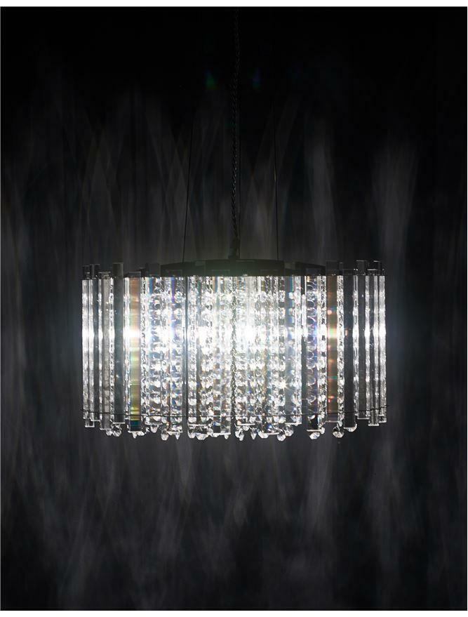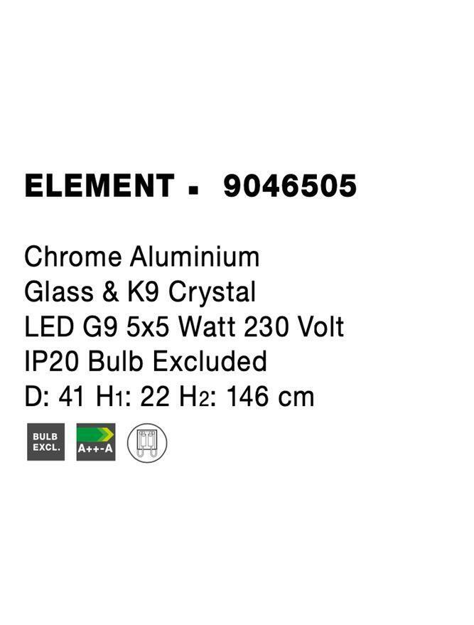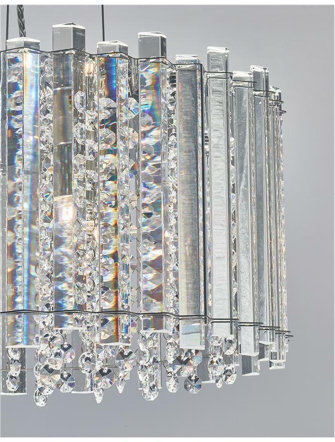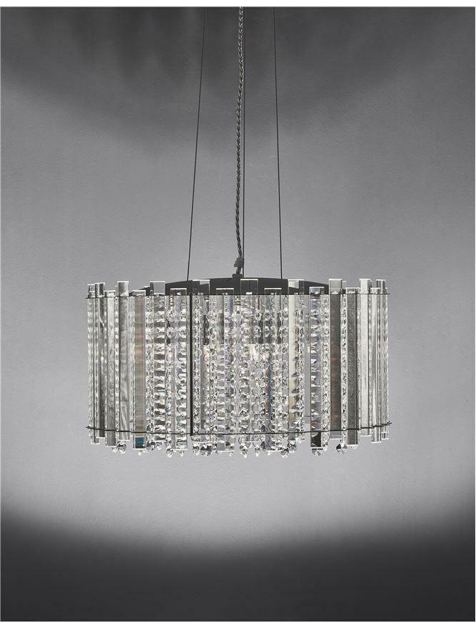 Závěsné svítidlo NOVA LUCE ELEMENT představuje spojení moderní elegance a okouzlujícího třpytu, které okamžitě promění každý interiér v exkluzivní prostor. Precizní kombinace chromovaného hliníku, skla a ušlechtilého K9 křišťálu z něj činí nepřehlédnutelný designový prvek – ideální volba pro obývací pokoje, reprezentativní jídelny či stylové vstupní haly.