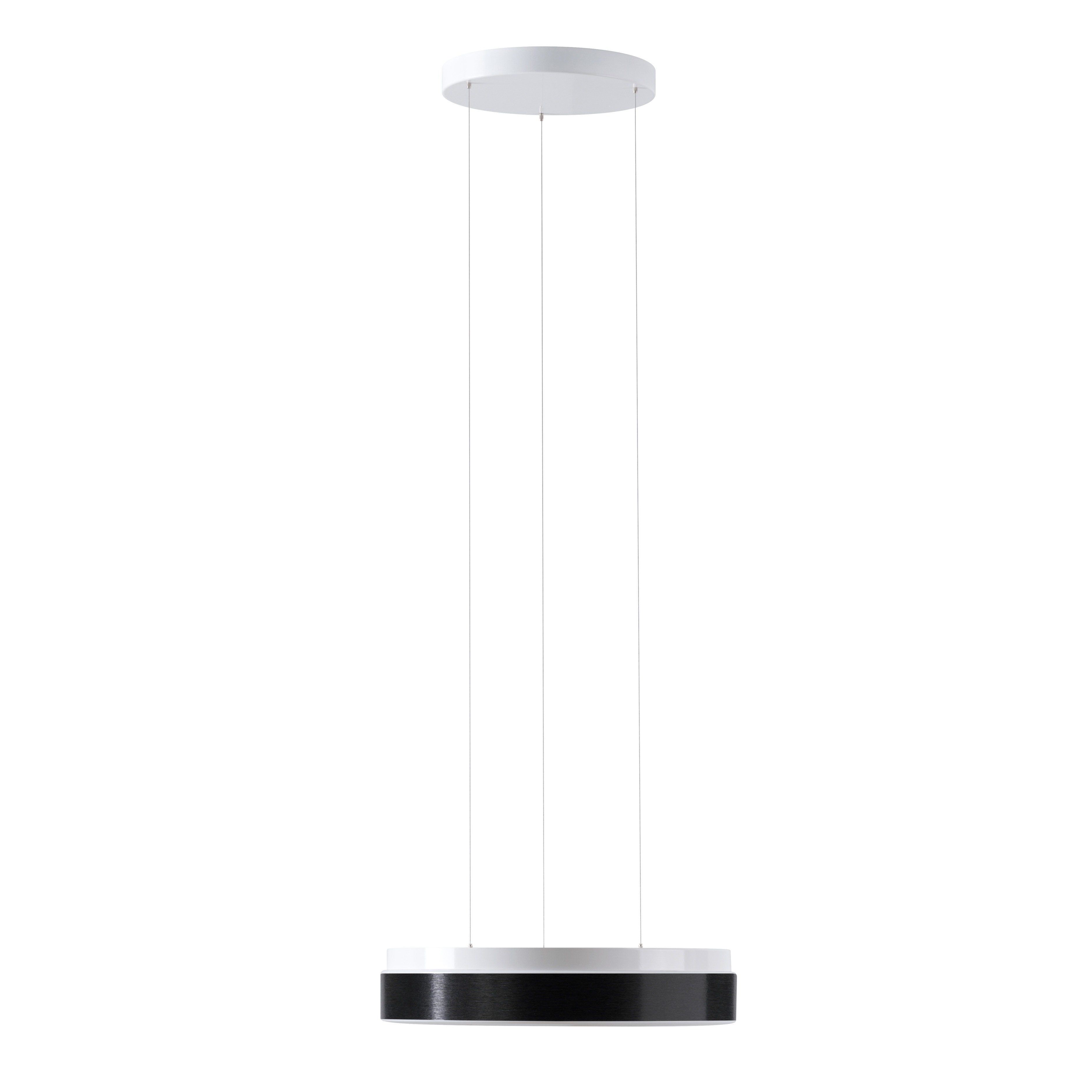 Stmívatelné: ano, DALI, Životnost: 50000h, Energetická třída: D, Index podání barev Ra: 80, Výška: 80 mm, Průměr: 400 mm, Délka závěsu: 1000 mm, Ochrana IP: IP40, Světelný tok: 2790lm, Barva světla: 4000 K, Příkon sv. zdroje: 33W, Celkový příkon: 33W, Napětí: 230V, Patice: LED, Vč. světelného zdroje: ano, Materiál: plast / ocel, Barva: bílá / bílo - černá, Kolekce: DELIA LEC, Počet světelných zdrojů: 1