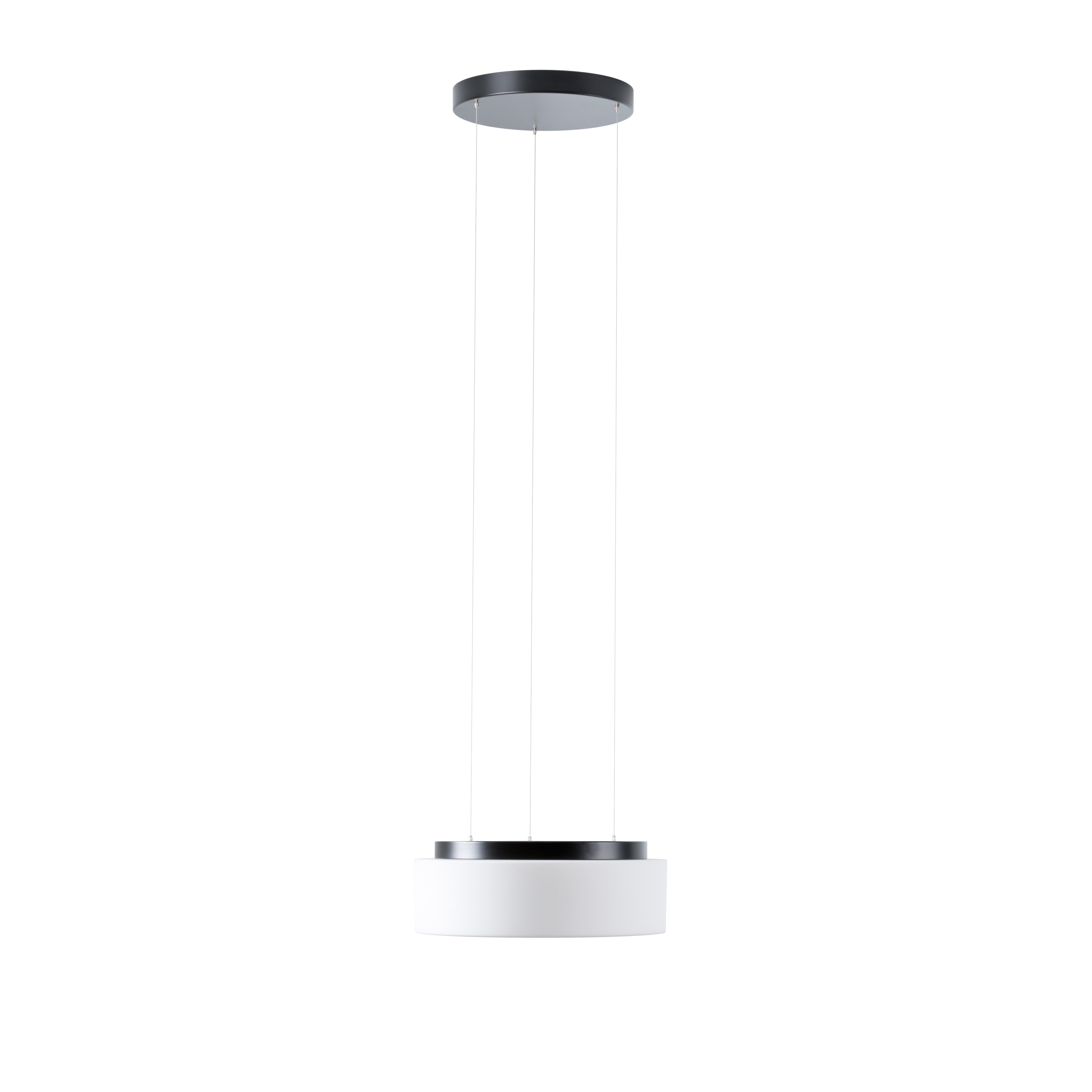Stmívatelné: ano, DALI, Životnost: 50000h, Energetická třída: D, Index podání barev Ra: 80, Výška: 125 mm, Průměr: 340 mm, Délka závěsu: 1000 mm, Ochrana IP: IP40, Světelný tok: 1760lm, Barva světla: 3000 K, Příkon sv. zdroje: 19W, Celkový příkon: 19W, Napětí: 230V, Patice: LED, Vč. světelného zdroje: ano, Materiál: sklo / ocel, Barva: černá / bílá, Kolekce: ERIS LE, Počet světelných zdrojů: 1