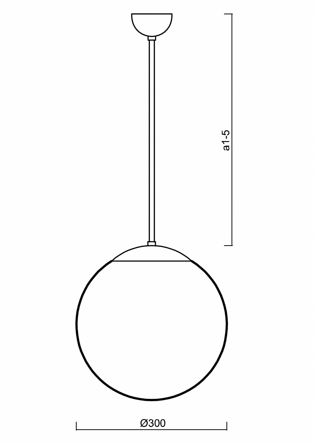 Kulaté závěsné svítidlo s průměrem stínidla Ø300 mm. Svítidlo se skládá z tyčového závěsu a PMMA stínidla. Stínidlo je uchyceno ocelovým držákem. Svítidlo je vhodné do interiéru.