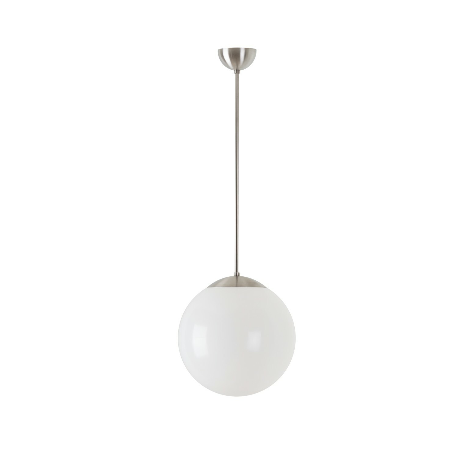 Kulaté závěsné svítidlo s průměrem stínidla Ø300 mm. Svítidlo se skládá z tyčového závěsu a polyetylenového stínidla. Stínidlo je uchyceno ocelovým držákem. Svítidlo je vhodné do interiéru.