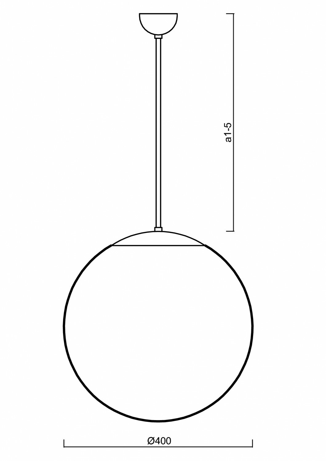 Kulaté závěsné svítidlo s průměrem stínidla Ø400 mm. Svítidlo se skládá z tyčového závěsu a polyetylenového stínidla. Stínidlo je uchyceno ocelovým držákem. Svítidlo je vhodné do interiéru.