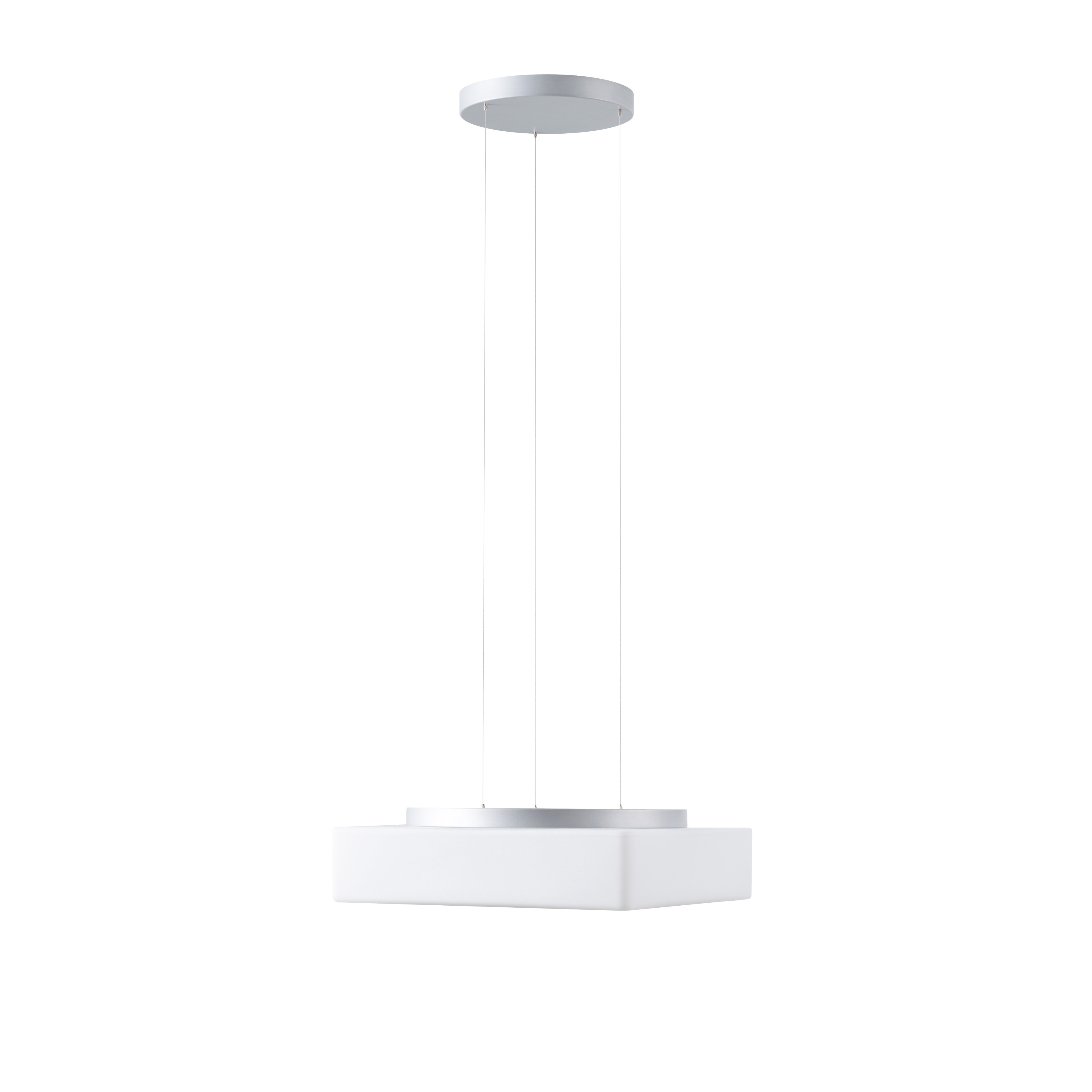 Stmívatelné: ano, DALI, Životnost: 50000h, Energetická třída: D, Index podání barev Ra: 80, Výška: 125 mm, Šířka: 440 mm, Délka: 440 mm, Délka závěsu: 1000 mm, Ochrana IP: IP40, Světelný tok: 2660/2800lm, Barva světla: 3000/4000 K, Příkon sv. zdroje: 27W, Celkový příkon: 27W, Napětí: 230V, Patice: LED, Vč. světelného zdroje: ano, Materiál: sklo / ocel, Barva: stříbrná / bílá, Kolekce: SAGITA LE2, Počet světelných zdrojů: 1