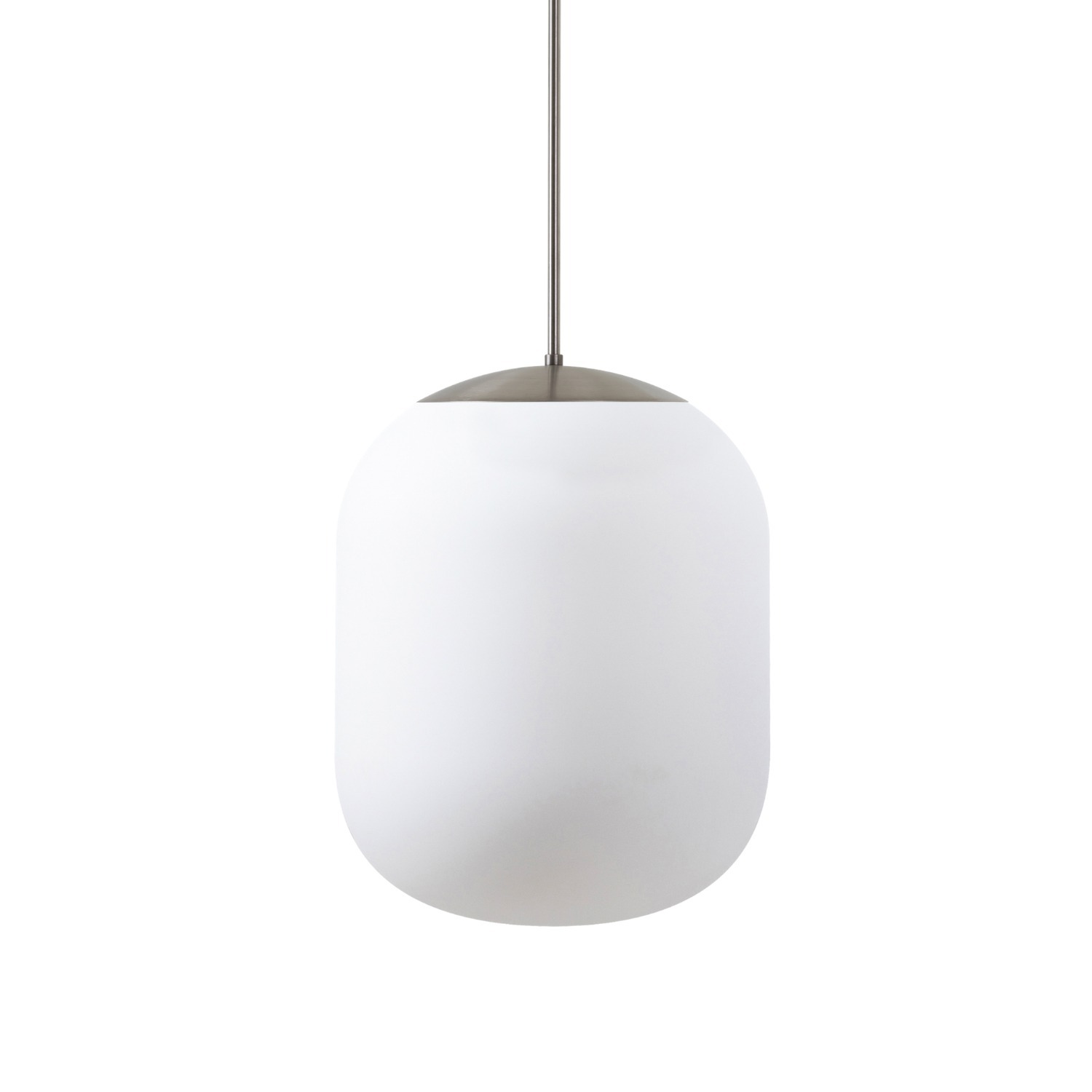 Nerez broušené závěsné LED svítidlo DALI a skleněné stínidlo TRIPLEX OPAL