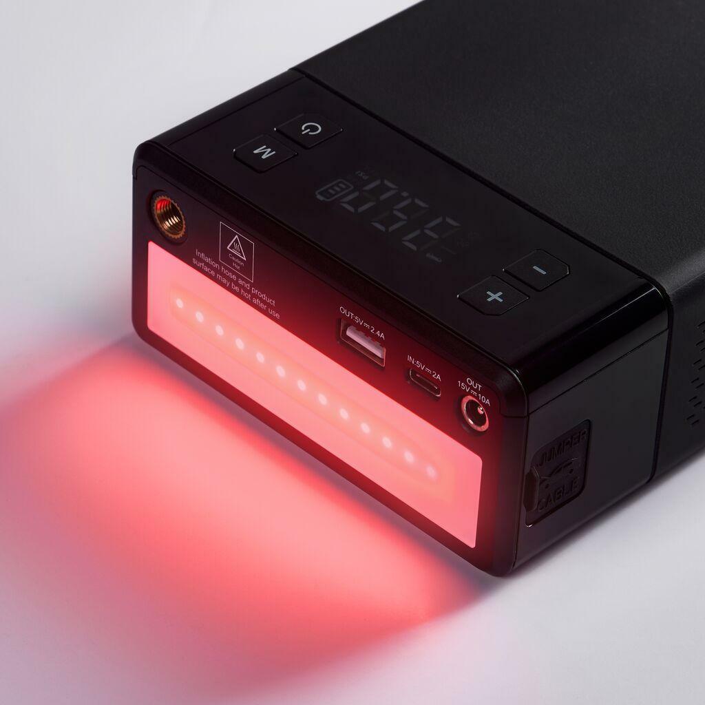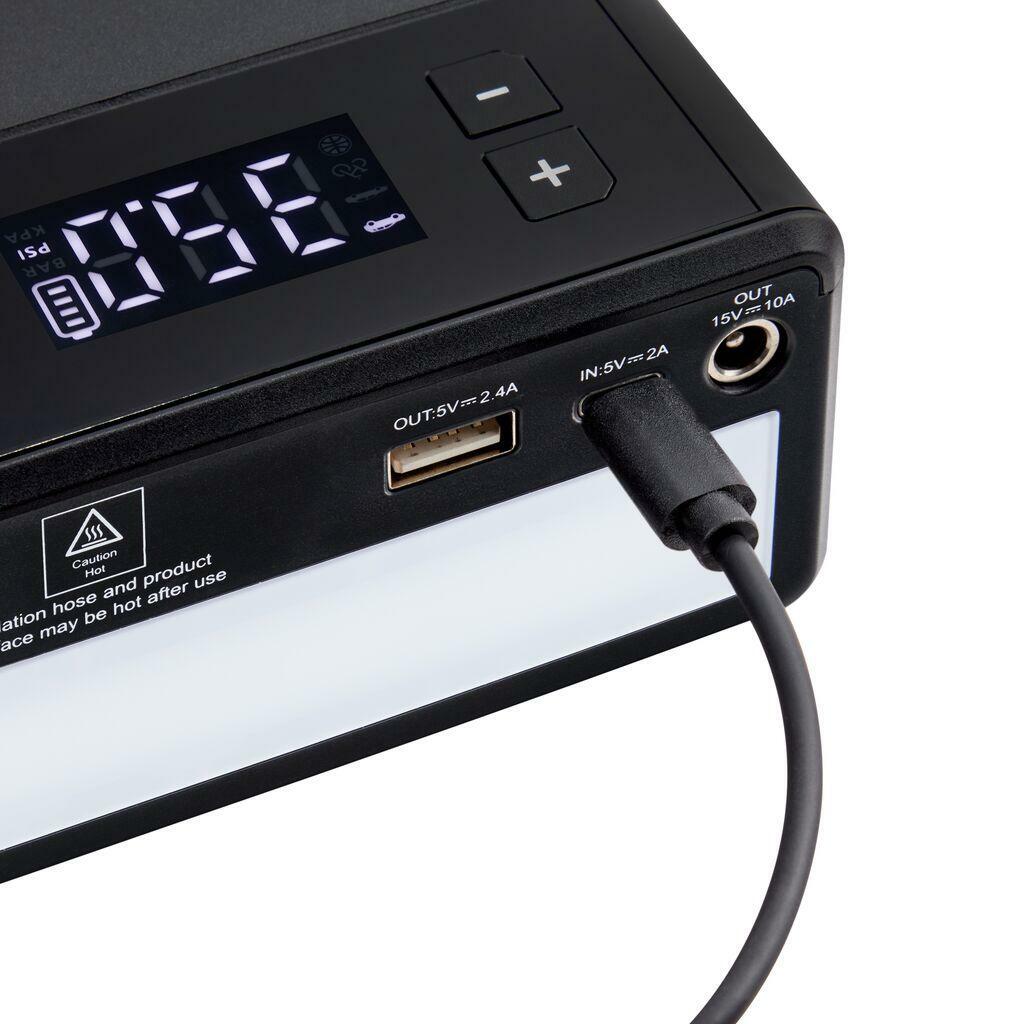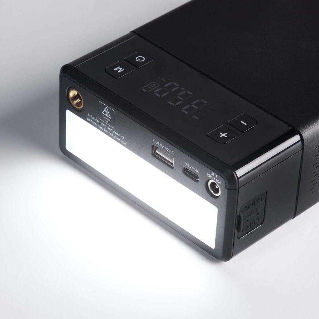 Zařízení lze využít i jako USB powerbanku s kapacitou 12 000 mAh. Nabíjejte telefon, navigaci nebo jiná zařízení pomocí USB-C nebo 15V zásuvky pro zapalovač cigaret – kdykoli a kdekoli. Dobíjení jednotky trvá přibližně 4 hodiny.