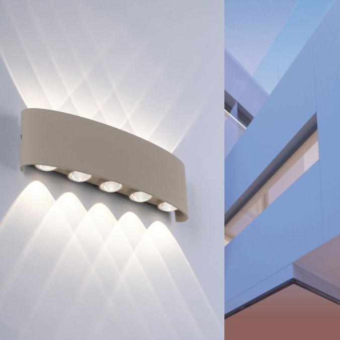 PAUL NEUHAUS LED nástěnné svítidlo CARLO, písková barva, IP54, světlo nahoru a dolu 3000K