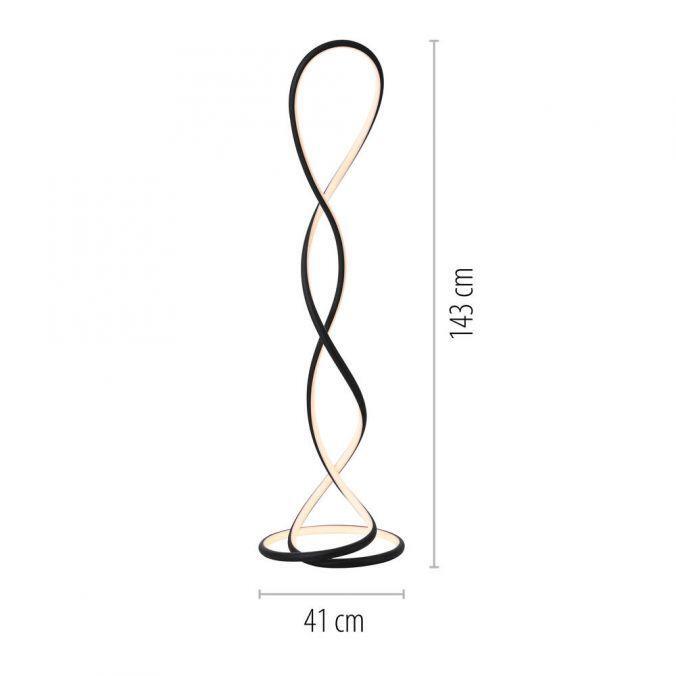 Výška: 1430 mm, Stmívatelné: ano, Hmotnost: 2400g, Šířka: 410mm, Délka: 410mm, Světelný tok: 3800lm, Barva světla: 2700K, Příkon: 63W, Celkový příkon: 70W, Napětí: 220-240V, Patice: LED, Vč. světelného zdroje: ano, Materiál: hliník, Barva: černá, Počet světelných zdrojů: 1