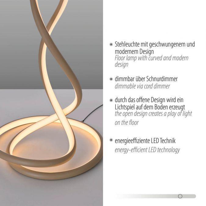Výška: 1430 mm, Stmívatelné: ano, Hmotnost: 2340g, Šířka: 410mm, Délka: 410mm, Světelný tok: 4000lm, Barva světla: 2700K, Příkon: 63W, Celkový příkon: 70W, Napětí: 220-240V, Patice: LED, Vč. světelného zdroje: ano, Materiál: hliník, Barva: béžová, Počet světelných zdrojů: 1
