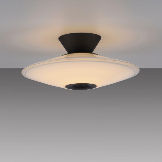Výška: 148 mm, Stmívatelné: ano, Hmotnost: 3640g, Průměr: 350mm, Světelný tok: 1800lm, Barva světla: 3000K, Příkon: 26W, Celkový příkon: 30W, Napětí: 220-240V, Patice: LED, Vč. světelného zdroje: ano, Materiál: sklo, Barva: černá, Počet světelných zdrojů: 1