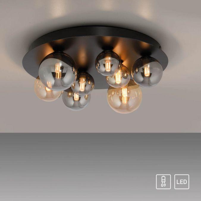 PAUL NEUHAUS LED stropní svítidlo POPSICLE, černá, jantarové a kouřové sklo, 3000K