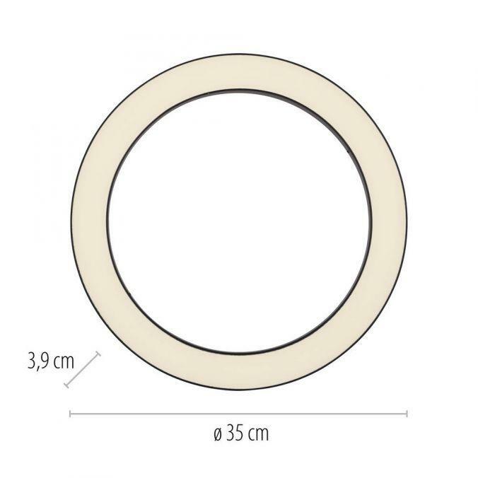 Výška: 39 mm, Dálkové ovládání: ano, Stmívatelné: ano, Hmotnost: 1432g, Průměr: 350mm, Světelný tok: 1600lm, Barva světla: 2200-5000K, Příkon: 21W, Celkový příkon: 27W, Napětí: 220-240V, Patice: LED, Vč. světelného zdroje: ano, Materiál: plast, Barva: antracit, Počet světelných zdrojů: 1