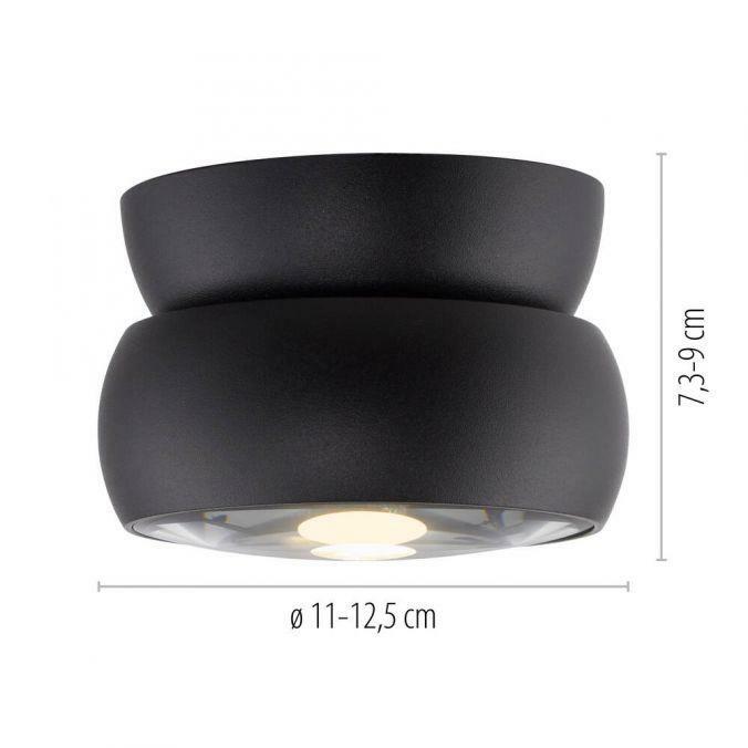 Výška: 90 mm, Stmívatelné: ano, Hmotnost: 800g, Šířka: 125mm, Průměr: 110mm, Délka: 125mm, Světelný tok: 650lm, Barva světla: 2700K, Příkon: 12W, Celkový příkon: 12W, Napětí: 220-240V, Patice: LED, Vč. světelného zdroje: ano, Materiál: kov, Barva: černá, Počet světelných zdrojů: 1