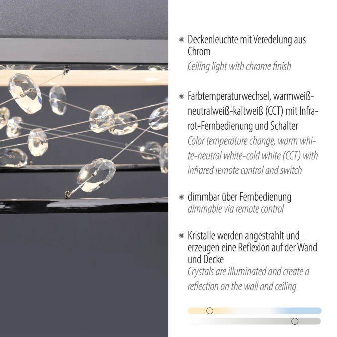 PAUL NEUHAUS LED stropní svítidlo SKINA, chrom, hranaté stmívatelné, dálkový ovladač 2700-5000K