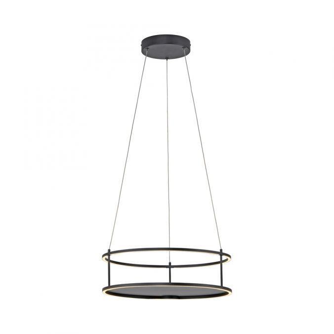 PAUL NEUHAUS LED závěsné svítidlo CONTURA černá, kruhové, dotykový se stmívačem, s policí, nastavitelná výška 3000K