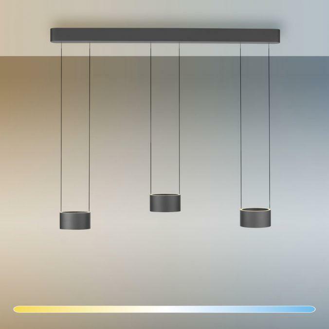 LED závěsné svítidlo PAUL NEUHAUS PURE Clipse přináší do vašeho interiéru nejen styl a moderní eleganci, ale také špičkové světelné technologie. Tři samostatné světelné moduly v šedém provedení vytvářejí výjimečnou atmosféru nad jídelním stolem, v obývacím pokoji nebo zasedací místnosti. Minimalistický tvar a masivní materiály jsou synonymem pro nadčasový vzhled i dlouhou životnost.