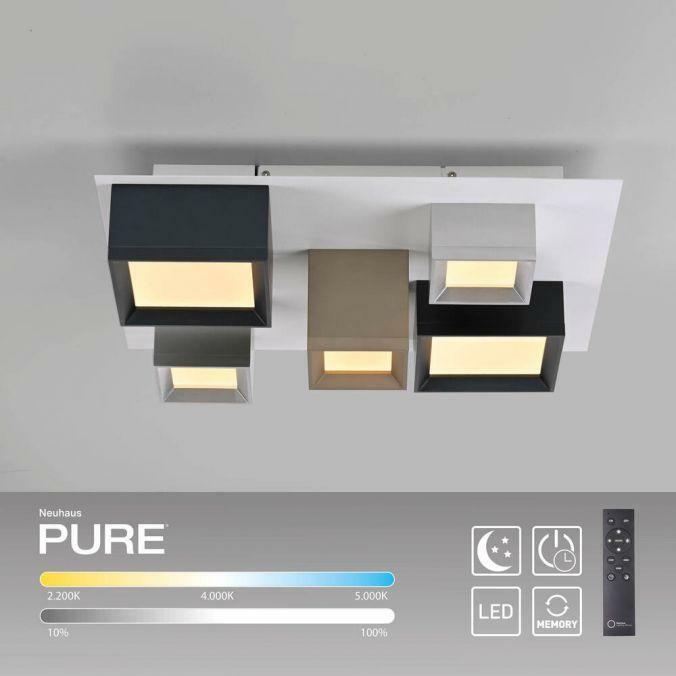 Stropní LED svítidlo PAUL NEUHAUS PURE Manhattan představuje špičku v moderním osvětlení interiérů. Jeho ikonická kombinace šedé, bronzové a hliníkové barvy v elegantním, geometrickém provedení se dokonale hodí do současných bytových konceptů. Tato lampa vyniká nejen svým vzhledem, ale i technickými možnostmi, které nabízí maximální komfort a přizpůsobení vašeho domácího osvětlení.