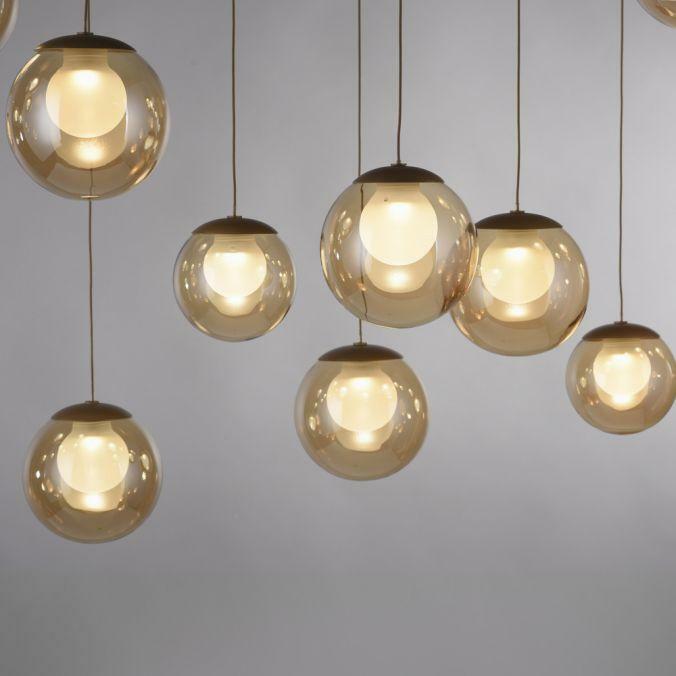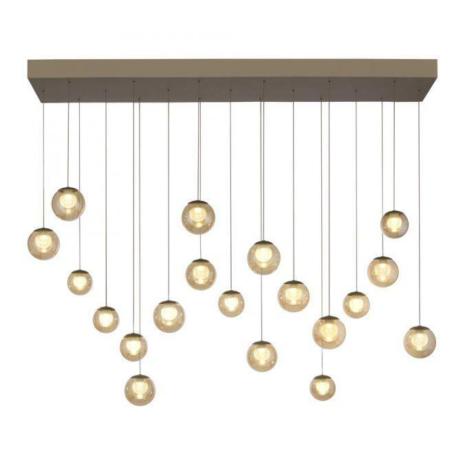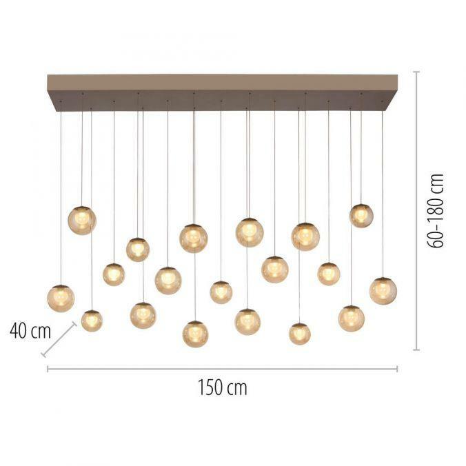 Výška: 1800 mm, Dálkové ovládání: ano, Stmívatelné: ano, Hmotnost: 17100g, Šířka: 400mm, Délka: 1500mm, Světelný tok: 4500lm, Barva světla: 2200-5000K, Příkon: 3W, Celkový příkon: 72W, Napětí: 220-240V, Patice: LED, Vč. světelného zdroje: ano, Materiál: sklo, Barva: bronz, Počet světelných zdrojů: 19