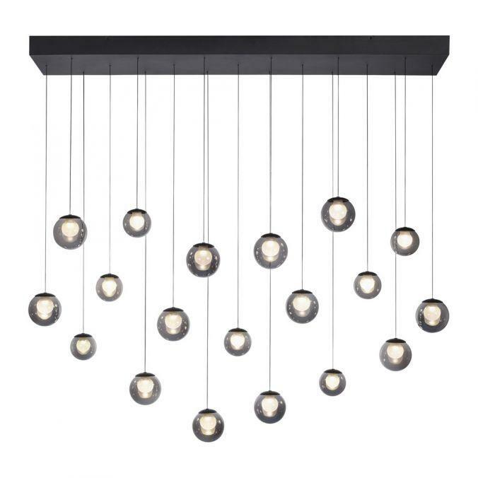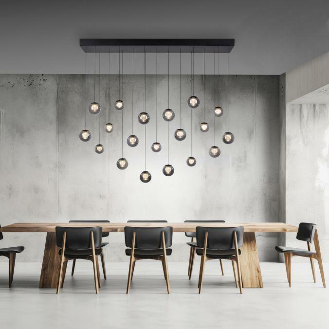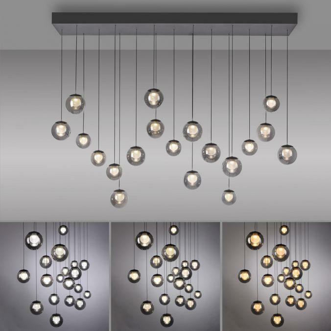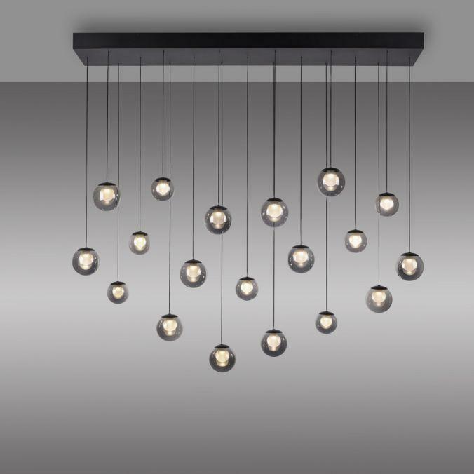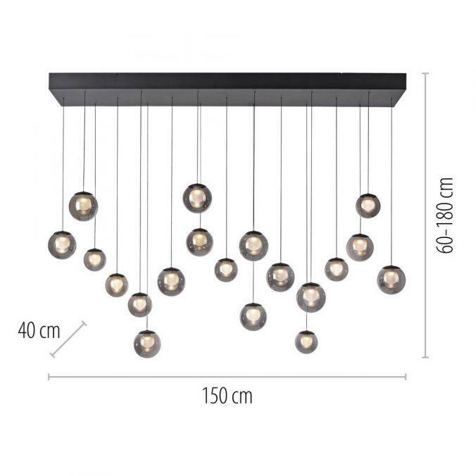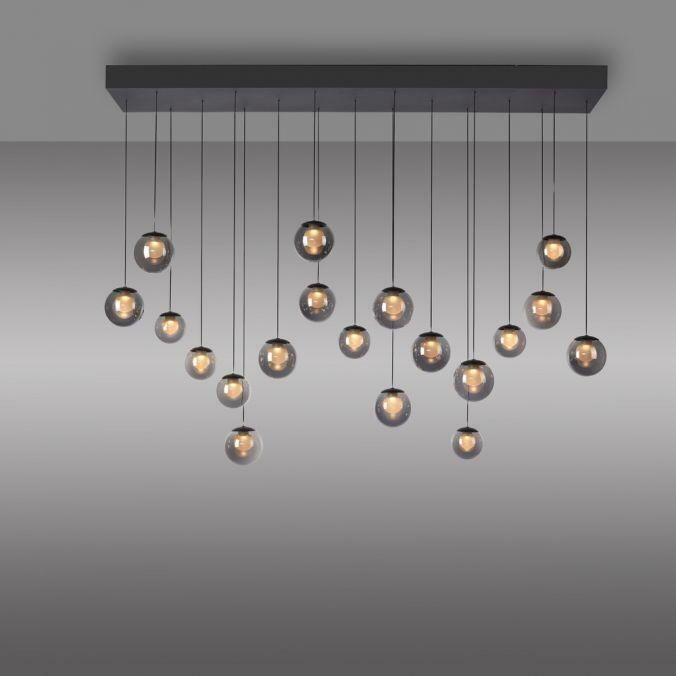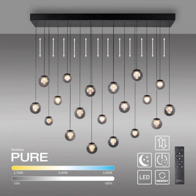 Závěsné svítidlo PAUL NEUHAUS PURE Popup v luxusním odstínu Mystic Grey zaujme hned na první pohled svým nadčasovým designem a precizním provedením. Devatenáct kouřových skleněných stínidel ve dvou velikostech vytváří harmonický a stylový celek, který se stane dominantou každého obývacího pokoje, jídelny či kuchyně.