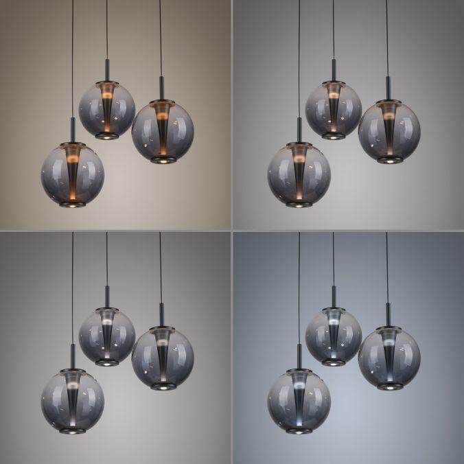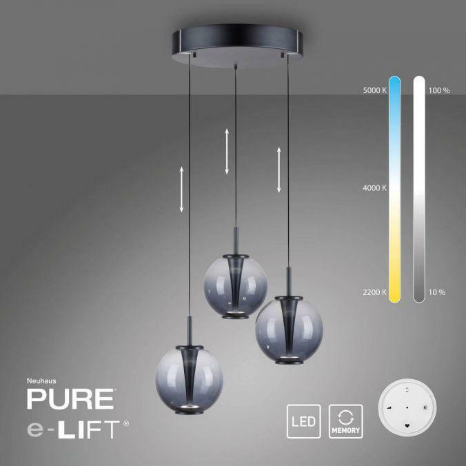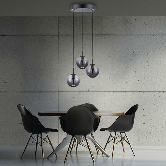 Objevte exkluzivní závěsné svítidlo PAUL NEUHAUS PURE E-Infinity v elegantní mystické šedé, které posouvá standardy moderního osvětlení na novou úroveň. Tři precizně tvarované koule z ušlechtilého kouřového skla spolu s minimalistickým designem přinášejí do vašeho interiéru nejen světlo, ale i jedinečný stylový prvek. Ideální nad jídelní či pracovní stůl, do obývacího pokoje nebo kuchyně.