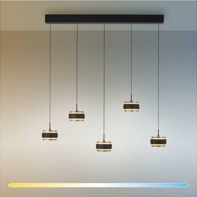 Výška: 2000 mm, Dálkové ovládání: ano, Stmívatelné: ano, Hmotnost: 6200g, Šířka: 130mm, Délka: 1010mm, Světelný tok: 1500lm, Barva světla: 2200-5000K, Příkon: 8W, Celkový příkon: 43W, Napětí: 220-240V, Patice: LED, Vč. světelného zdroje: ano, Materiál: kov/sklo, Barva: černá, Počet světelných zdrojů: 5