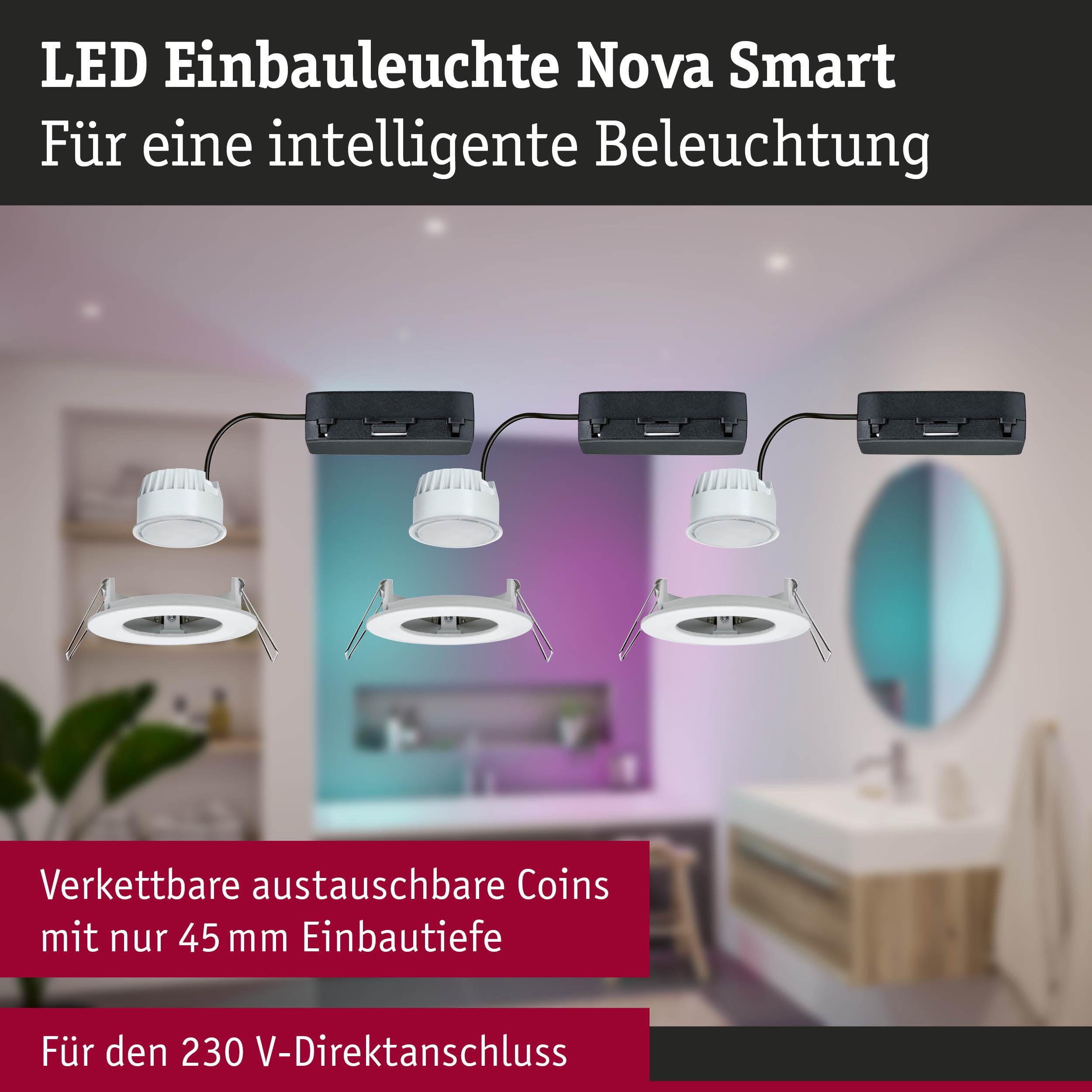 Třída ochrany: II, Úhel svícení: 105st., Stmívatelné: ZigBee, Životnost: 30000h, Energetická třída: G, Index podání barev Ra: 80, Průměr: 78mm, Ochrana IP: IP44, Světelný tok: 1500lm, Barva světla: RGB+2200-6500K, Příkon sv. zdroje: 6W, Celkový příkon: 18W, Napětí: 230V, Patice: LED, Zápustná hloubka: 45mm, Vč. světelného zdroje: ano, Materiál: hliník, Barva: bílá, Počet světelných zdrojů: 3