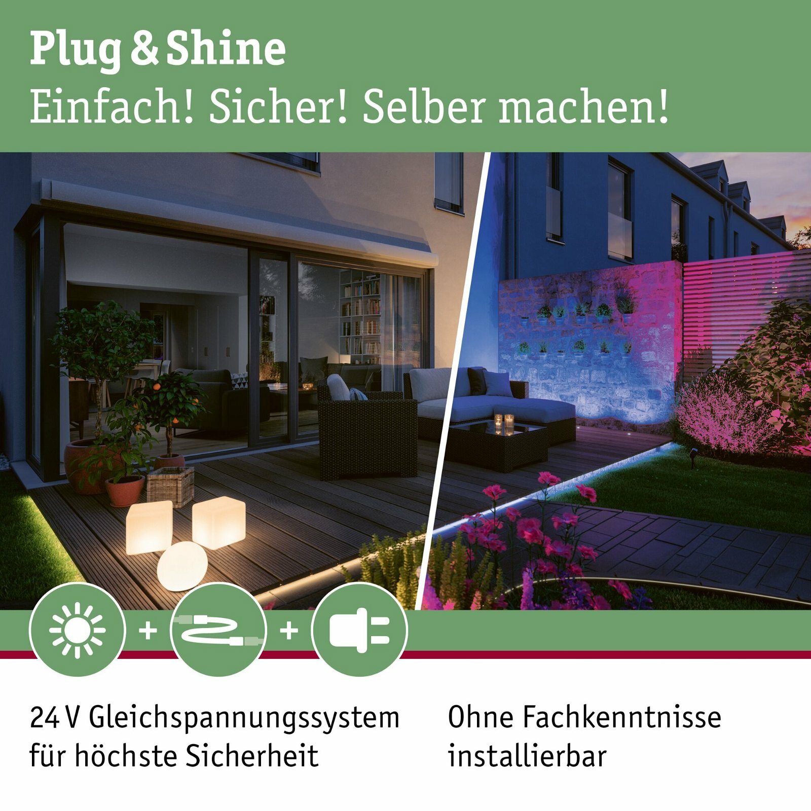 Světelný objekt Cube od PAULMANN s technologií Zigbee 3.0 je ideálním doplňkem pro zvýraznění květinových záhonů, terasy nebo balkonu. S délkou hrany 20 cm nabízí dekorativní řešení osvětlení, které zaujme na první pohled. Díky pevným LED modulům si můžete vybrat mezi barevným nebo bílým světlem podle své nálady.