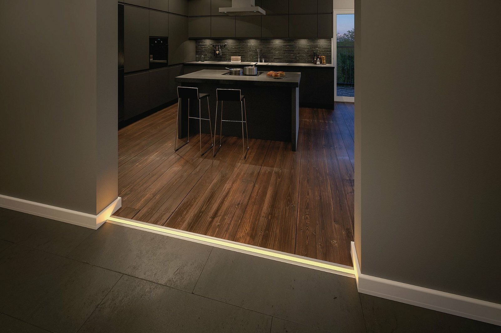 Step Profil je osvětlovací prostorový oddělovač, který umožňuje oddělit různé obytné prostory nebo podlahové krytiny pomocí rozptýleného orientačního světla. Instaluje se pomocí šroubů do podlahy a lze jej vybavit LED pásem dle vlastního výběru.
