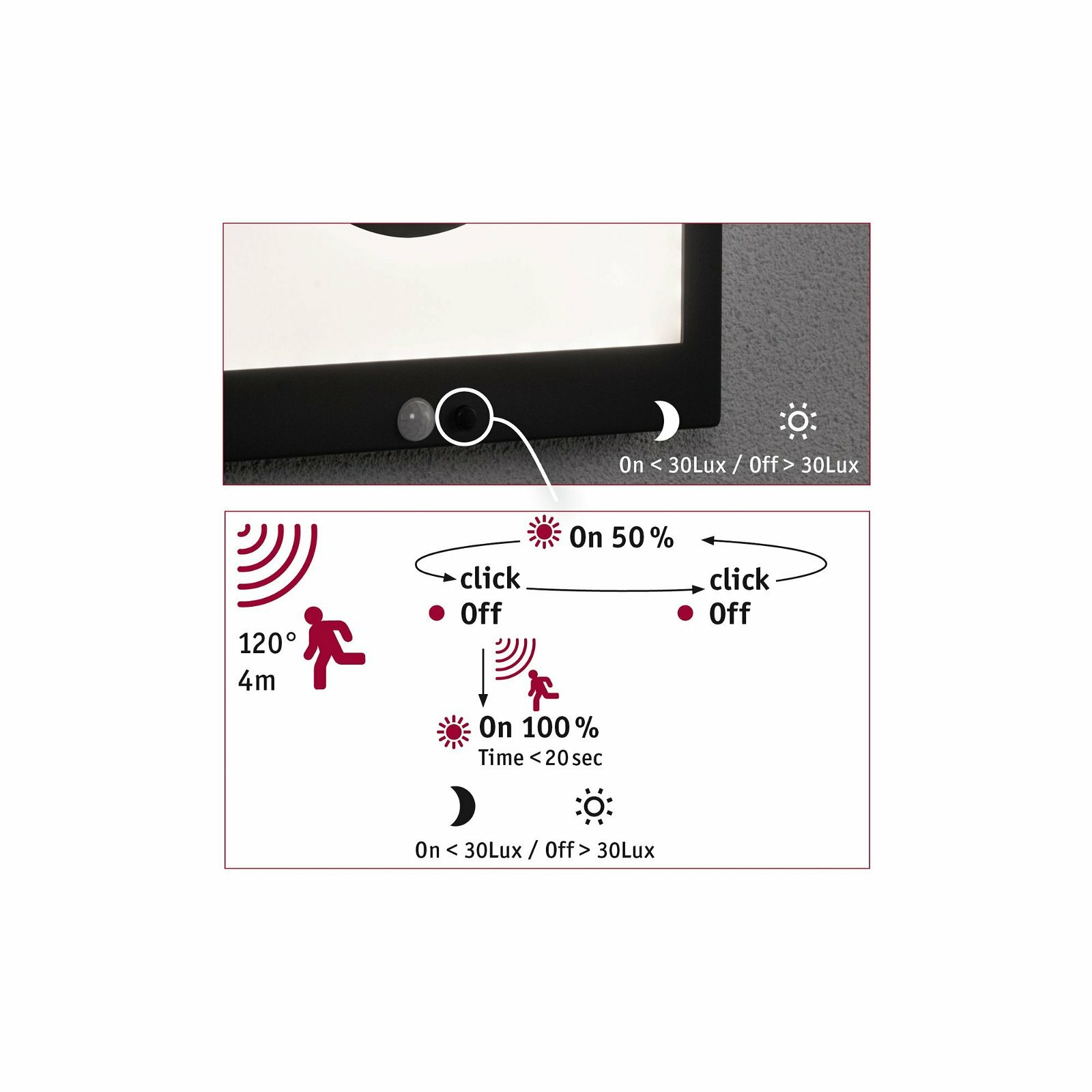 Venkovní panel Taiano o rozměrech 300x300 mm poskytuje příjemně rozptýlené světlo, které je ideální pro vaši zahradu nebo terasu. Díky praktické solární technologii může být umístěn nezávisle na elektrické síti, protože energii zajišťuje slunce. Po 12 hodinách nabíjení nabízí světlo přibližně 1,5 hodiny svícení. Integrované pohybové čidlo automaticky zapne světlo, jakmile se někdo přiblíží.