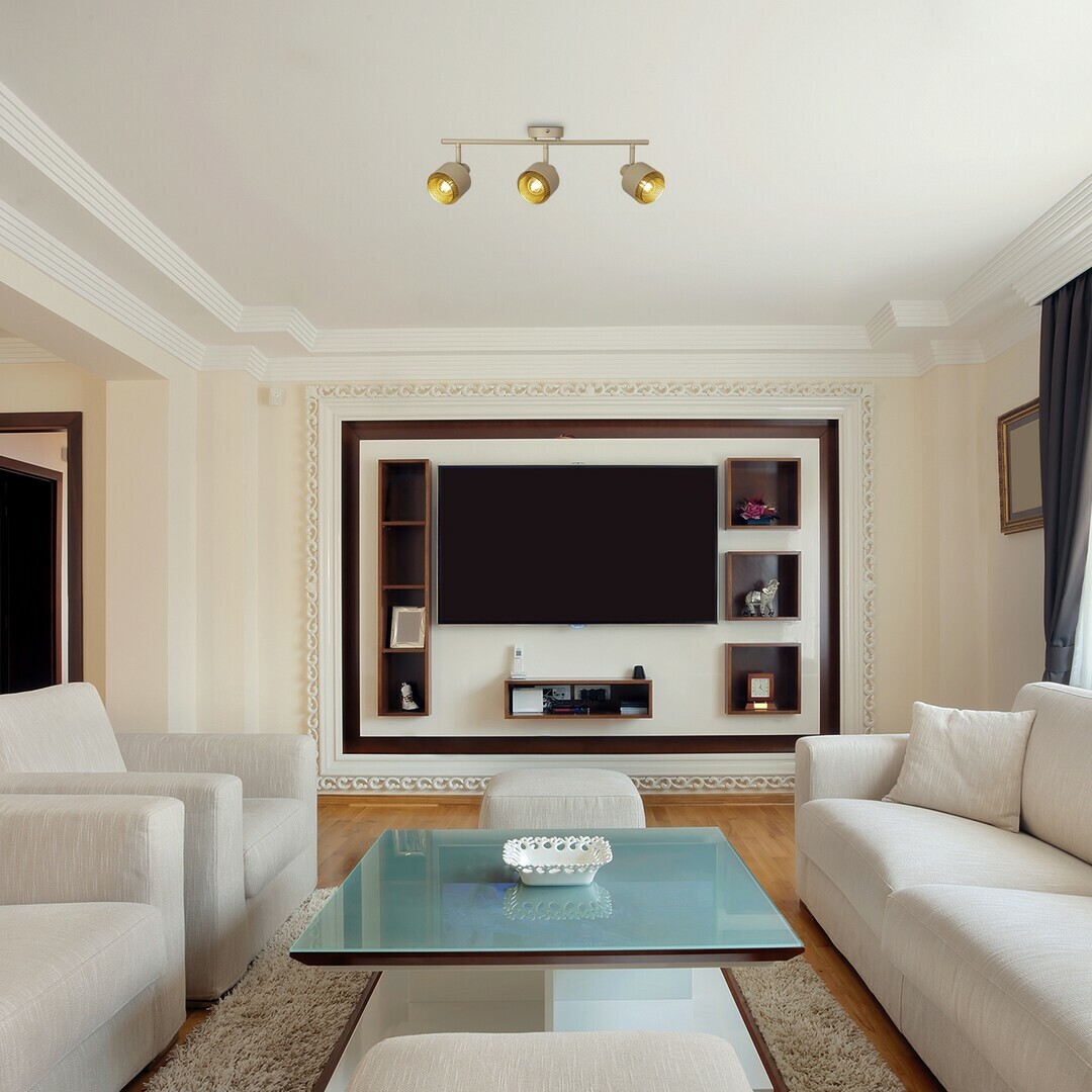 Styl: Moderní, Typ: Bodová svítidla, Technologie LED: ne, Stupeň krytí: IP20, Barva: světle hnědá / zlatá, Materiál: kov, Zdroj světla součástí: ne, Záruka: 2 roky, Počet světelných zdrojů: 3, Patice: E14, Příkon světelného zdroje: 40 W, Příkon: 120 W, Napětí: 230V, 50Hz, Rozeta: 90.0 mm, Délka: 525.0 mm, Výška: 150.0 mm, Hmotnost: 1160 g, Stupeň ochrany: I