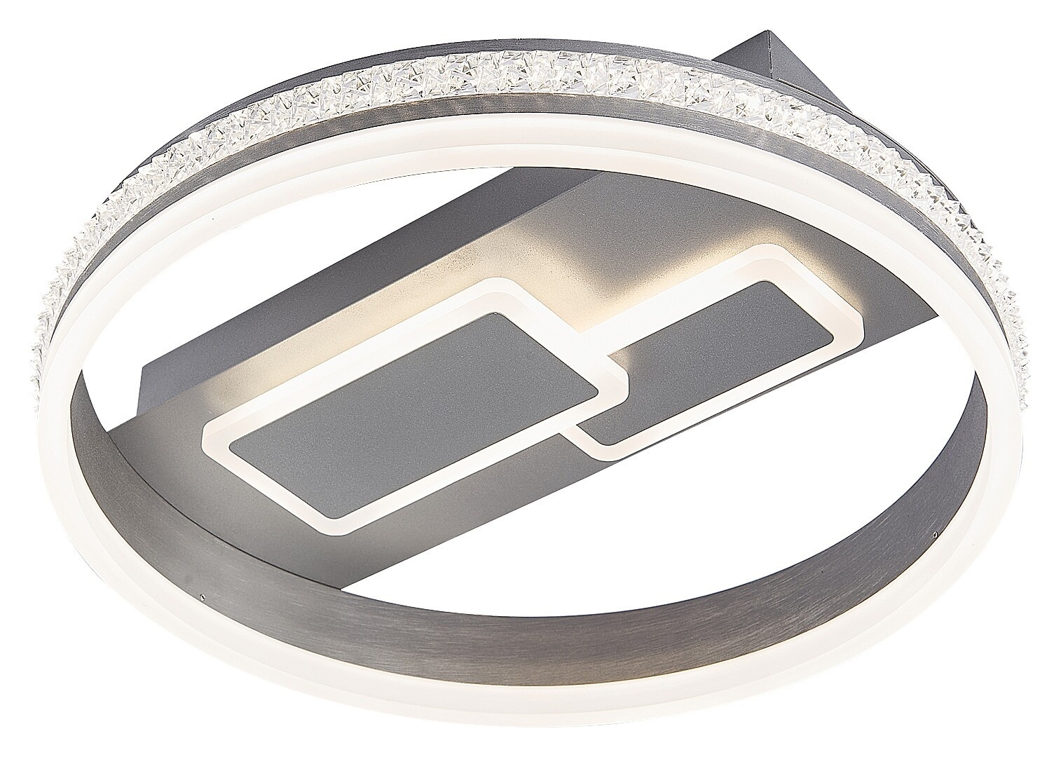 Kulaté stropní svítidlo Roxana doporučujeme především do moderních obýváků, jídelen nebo ložnic. Šedé kovové svítidlo je doplněno akrylovým stínítkem a lze jej upevnit na strop pomocí čtvercové ozdobné základny. Svítidlo Roxana ozvláštňuje kombinace kulatých a hranatých tvarů, povrch z broušeného hliníku a křišťálové zdobení kolem prstencového prvku svítidla. Toto stropní svítidlo obsahuje vestavěný LED světelný zdroj o výkonu 50W, světelným tokem 2450 lumenů a teplotou barvy 4000K. Přirozené bílé světlo svítidla Roxana vytváří v místnosti čistý, moderní efekt. Průměr tohoto stropního svítidla je 400 mm, vzdálenost od stropu je 100 mm. Na tento model poskytujeme 5letou záruku.