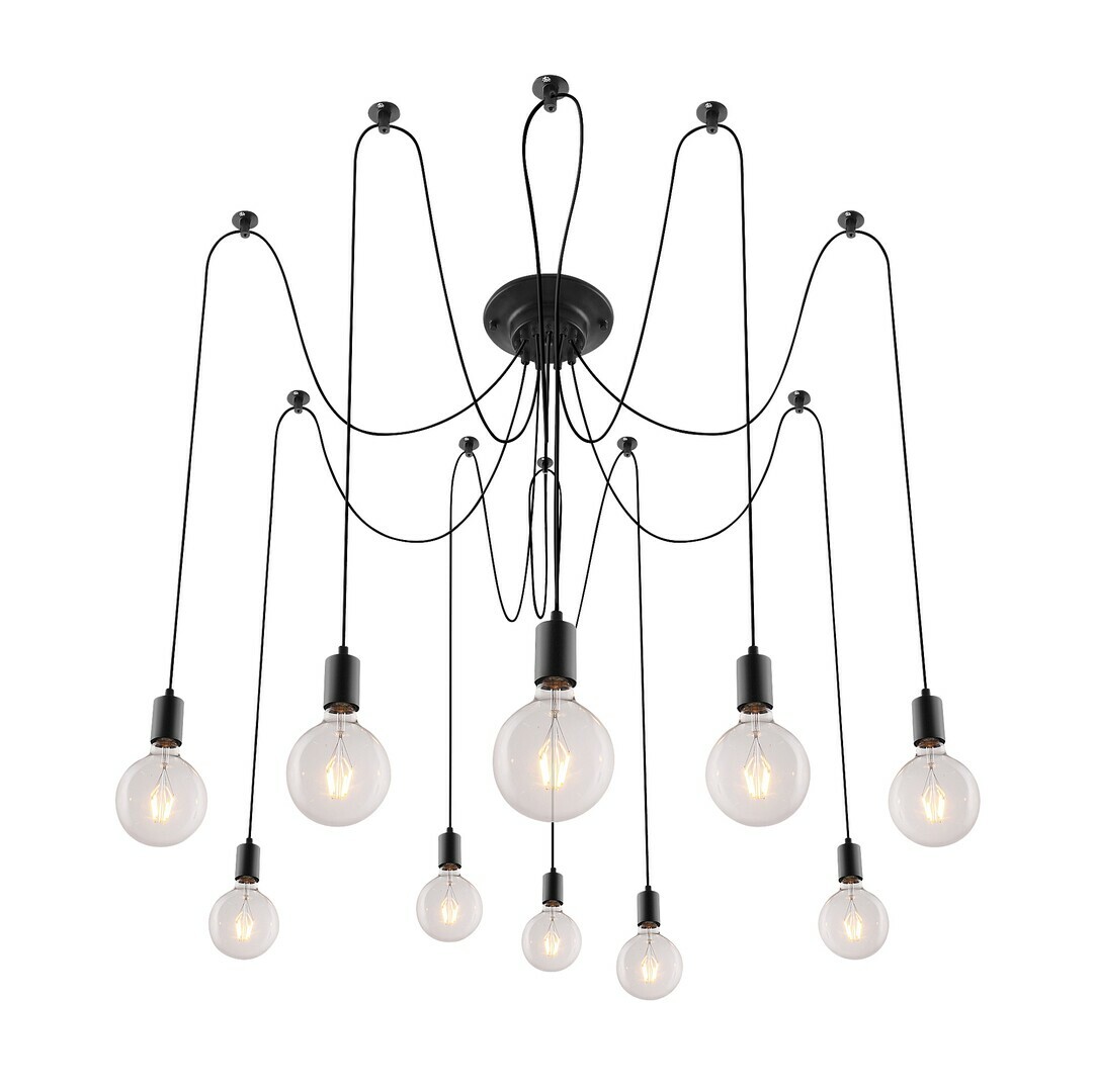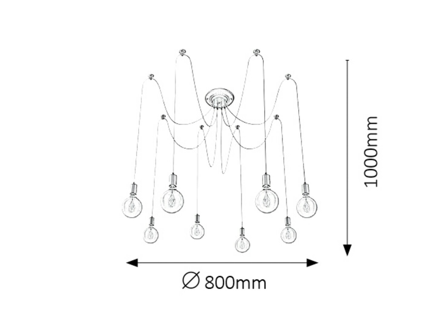 Styl: Industriální, Typ: Závěsná svítidla, Technologie LED: ne, Stupeň krytí: IP20, Barva: matná černá, Materiál: plast, Zdroj světla součástí: ne, Záruka: 2 roky, Počet světelných zdrojů: 10, Patice: E27, Příkon světelného zdroje: 60 W, Příkon: 600 W, Napětí: 230V, 50Hz, Průměr: 800.0 mm, Výška: 1000.0 mm, Hmotnost: 2400 g, Stupeň ochrany: I