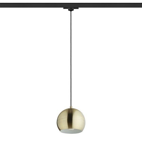 Kulaté kovové závěsné svítidlo pro použití se žárovkou E27. Přívodní kabel je zakončen adaptérem do tříokruhové lišty.