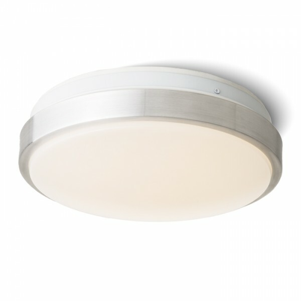 Stropní přisazené LED svítidlo Melisa s mléčným akrylátovým stínidlem a límcem z česaného hliníku dipsonuje čistými liniemi. Výkon 12W, barva světla 3000K.