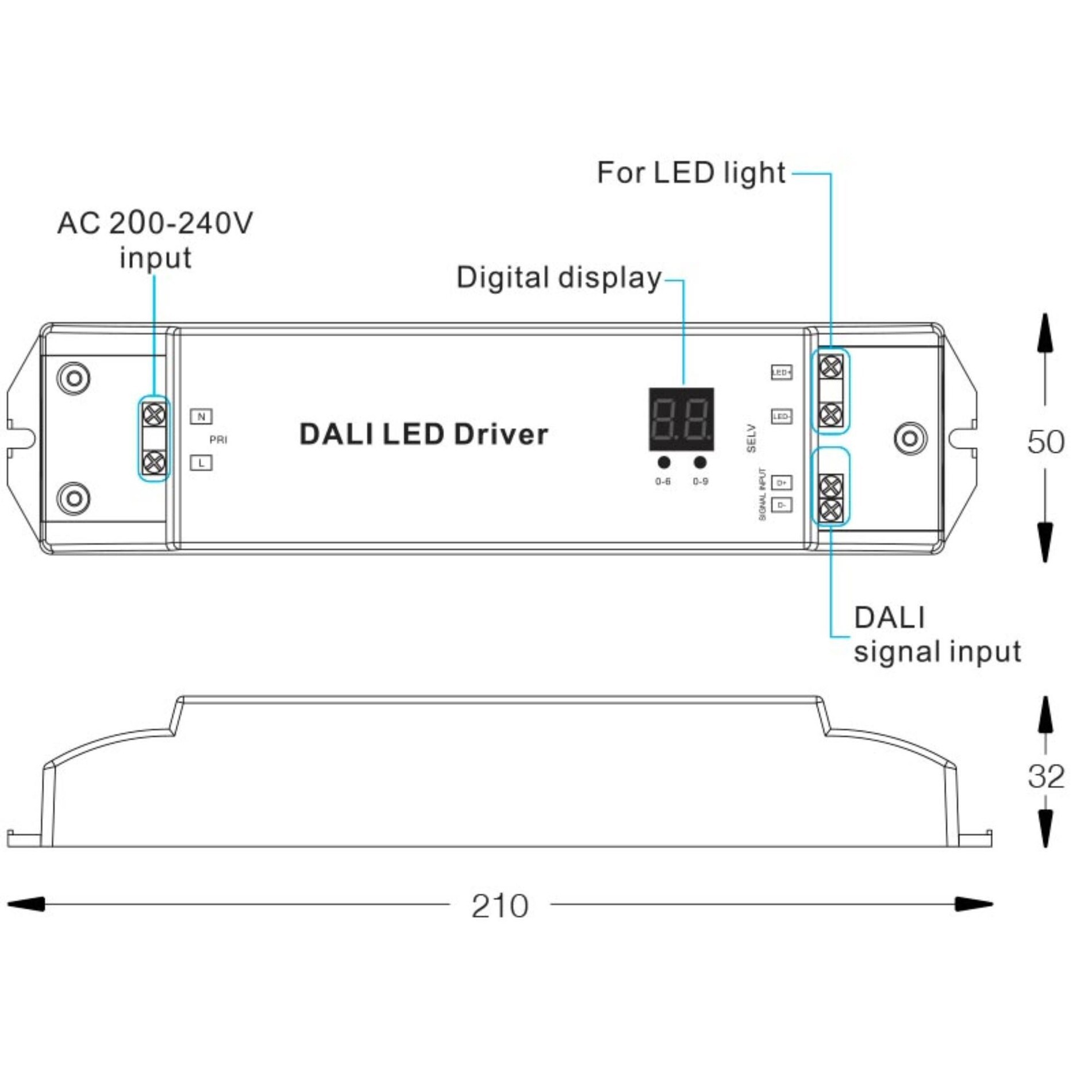 Tento napájecí zdroj je vhodný pro napájení jednobarevných LED pásků a svítidel s napětím 24 V DC do celkového výkonu 50 W. Umožňuje jejich stmívání prostřednictvím systému DALI nebo tlačítkového ovládání. Je ideální pro rezidenční i komerční instalace, kde je požadováno centrální nebo automatizované řízení osvětlení. Díky vysoké účinnosti a dlouhé životnosti je vhodný pro trvalý provoz v interiéru.