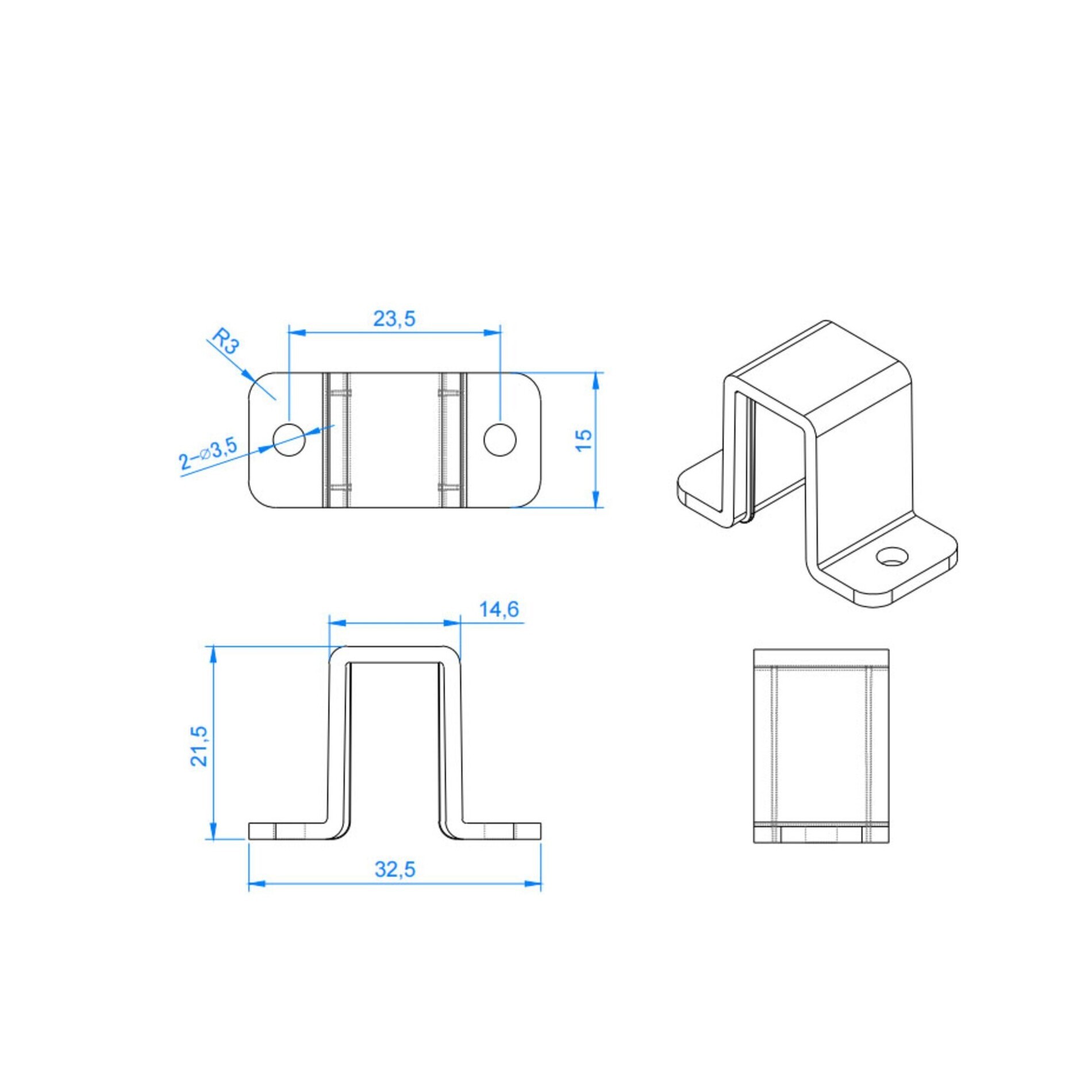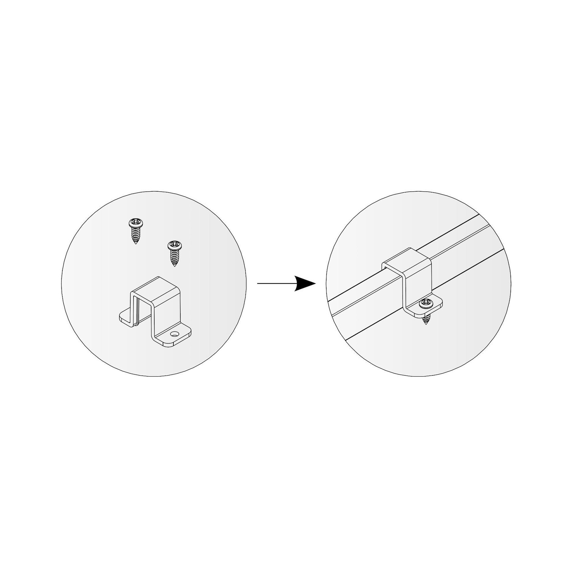 Držáky jsou vyrobeny z čirého plastu, mají jednoduchý a nenápadný tvar ve tvaru „U“ s otvory pro šrouby v základně. Průhledný materiál umožňuje univerzální použití bez rušení designu samotného LED pásku.