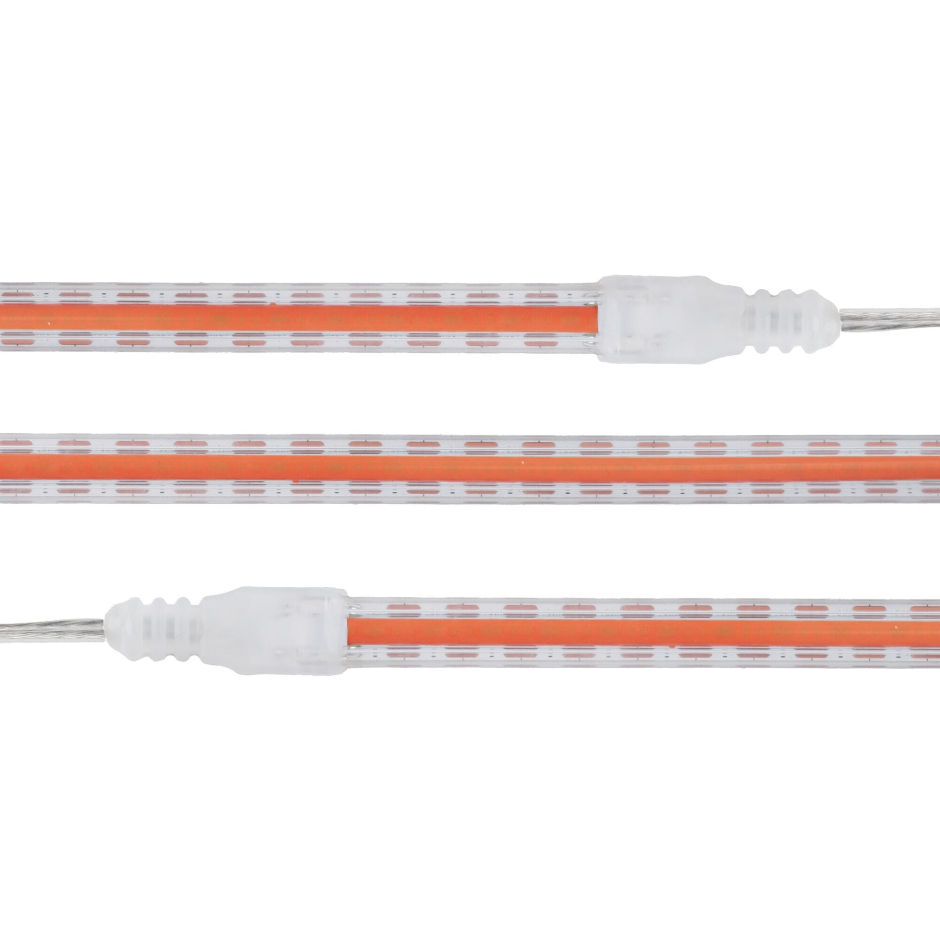 LED pásek má úzký a plochý tvar s šířkou 12 mm a výškou 9 mm (bez napájecího vodiče 6 mm). Povrch je chráněn transparentním silikonem, který zajišťuje vodotěsnost a dlouhou životnost. Červené světlo je rovnoměrné po celé délce pásku díky technologii COB.
