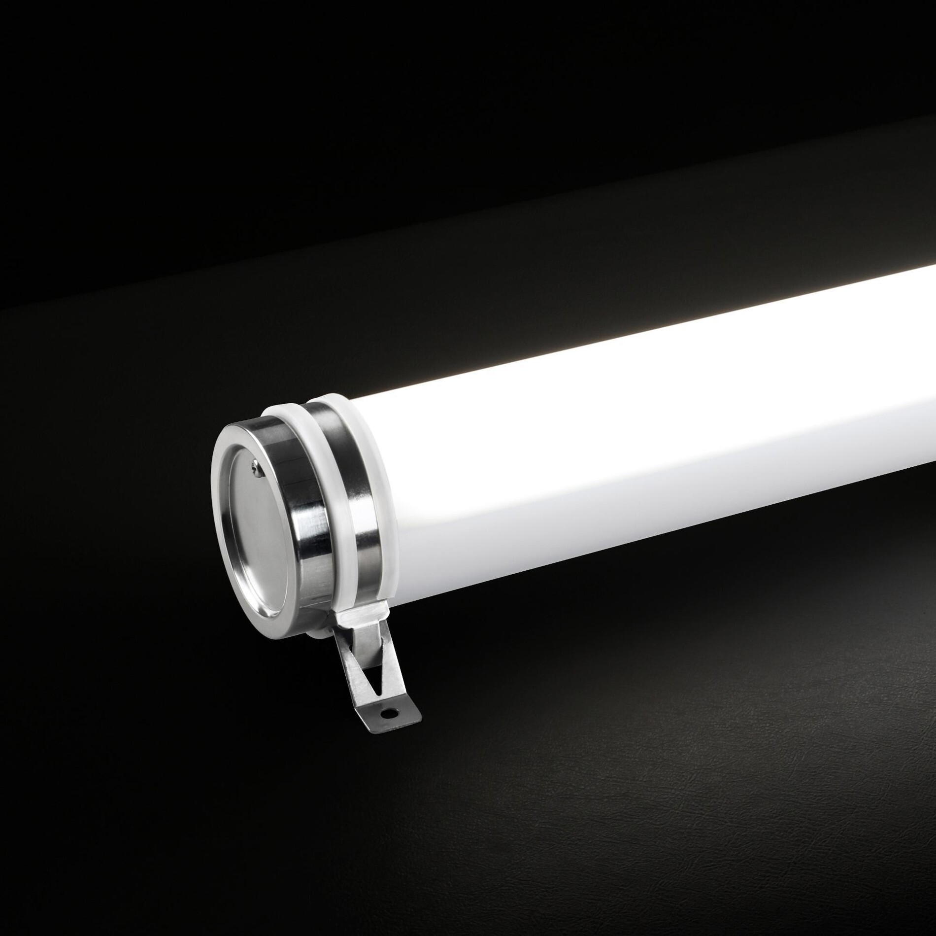Světlo má robustní tubusový tvar s průměrem 84 mm, vyrobený z odolného plastu (PMMA) s opálovým povrchem, který zajišťuje rovnoměrné rozptýlení světla a zároveň chrání proti korozi. Bílé provedení a kvalitní těsnění umožňují použití v prostředí s vysokou vlhkostí, prachem i častým čištěním pod tlakem. Konstrukce umožňuje montáž na stěnu i strop.